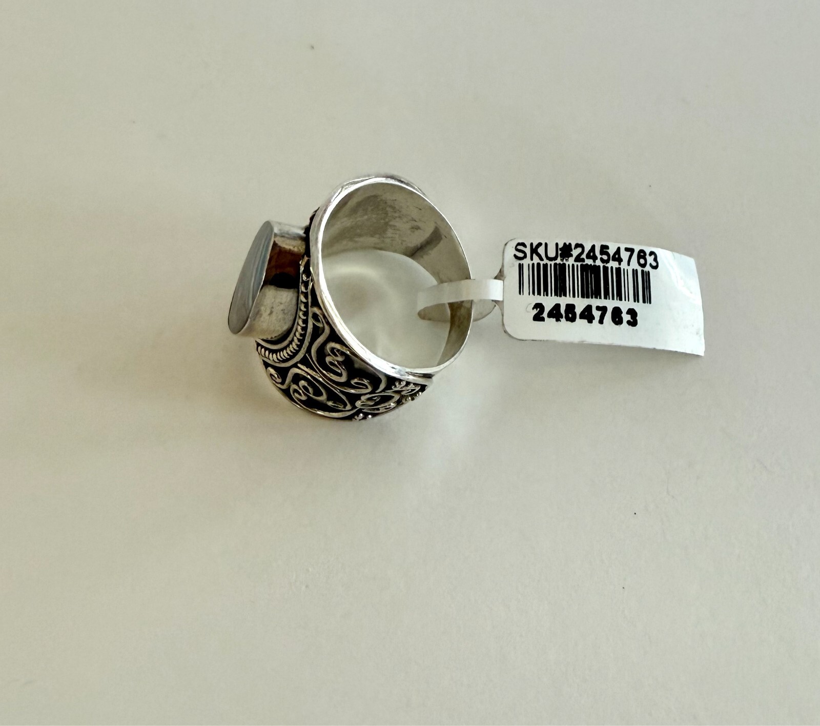 NWT Sterling Silver Paua Abalone 925 Ornate Wide Band Ring size 7.75, box 7.8gr