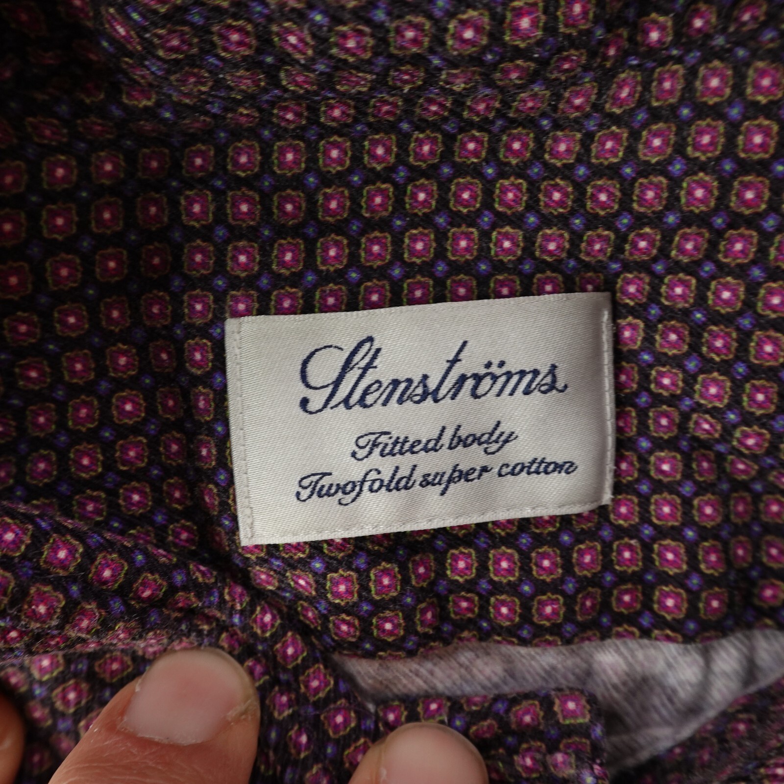 Stenstroms Shirt Large Red Geometric Fitted Body Twofold Super Cotton 16.5 42
