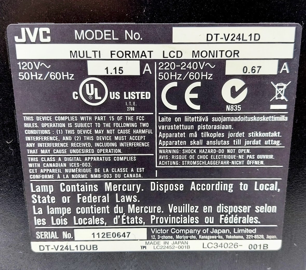 JVC DT-V24L1D 24 Multi-Format Professional HD LCD Studio Monitor