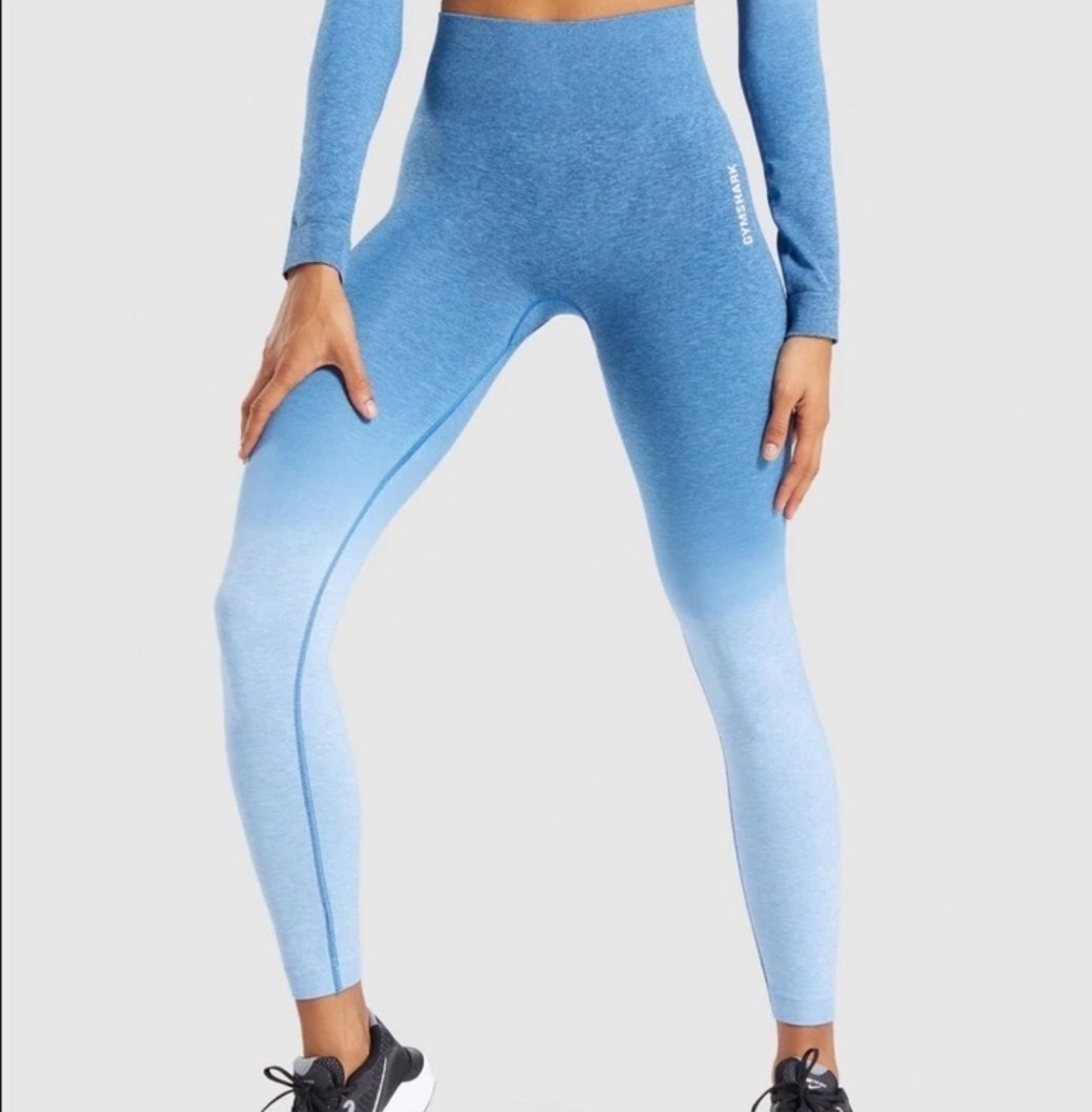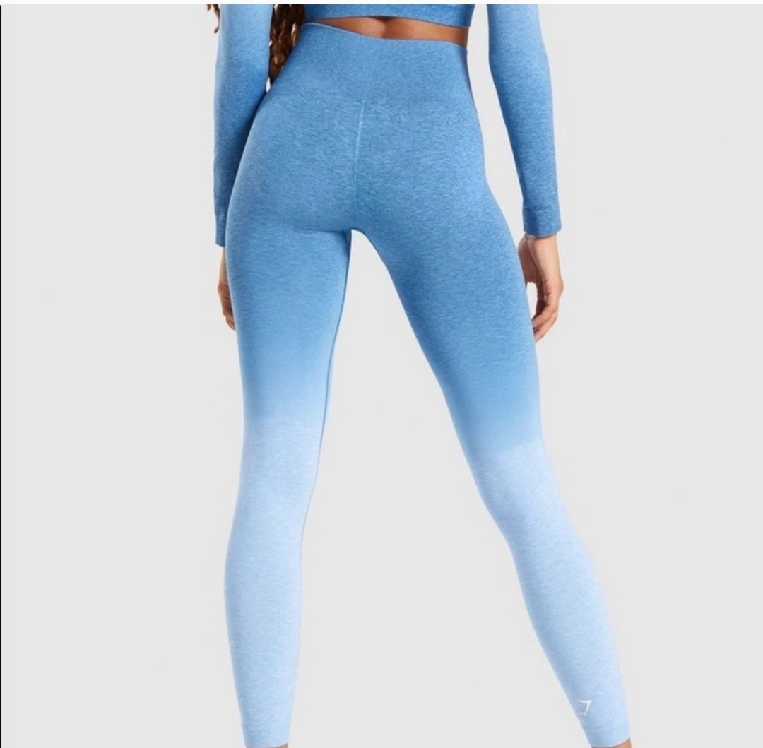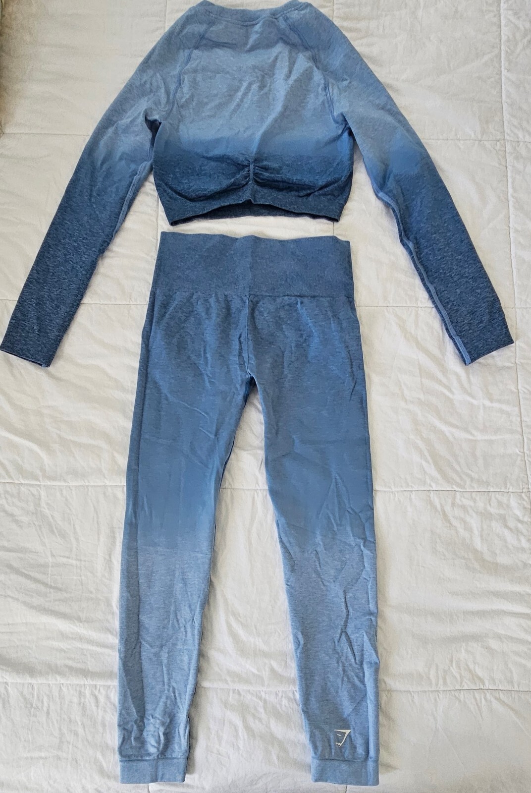 как выглядит Gym Shark 2 piece SET Ombre Blue Long Sleeve Crop Top and Leggings Small фото