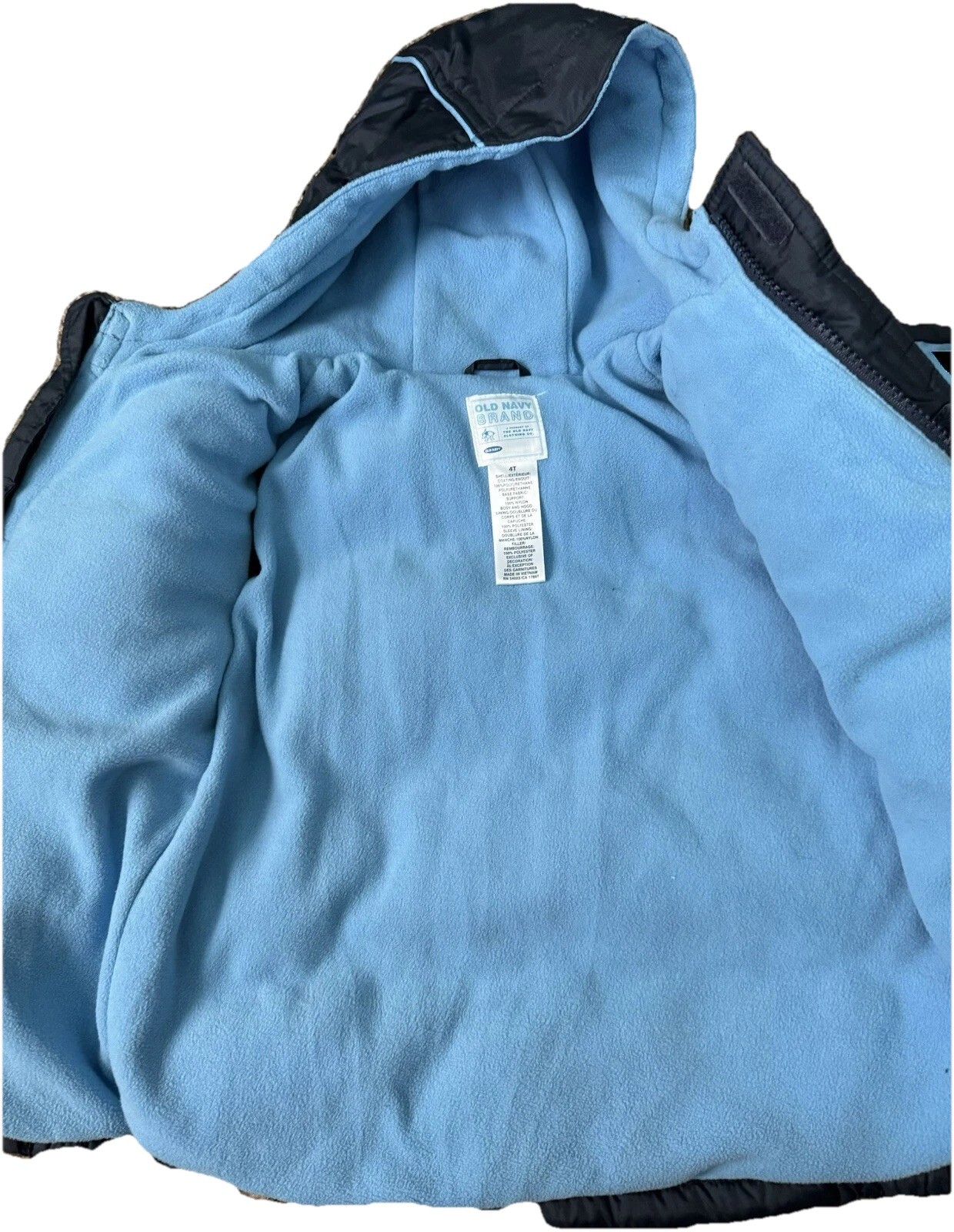 Old Navy 4T Hooded Winter Jacket Navy/Swiss Blue Fleece Lined EUC