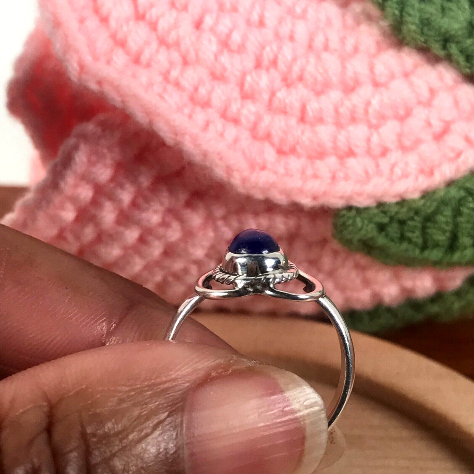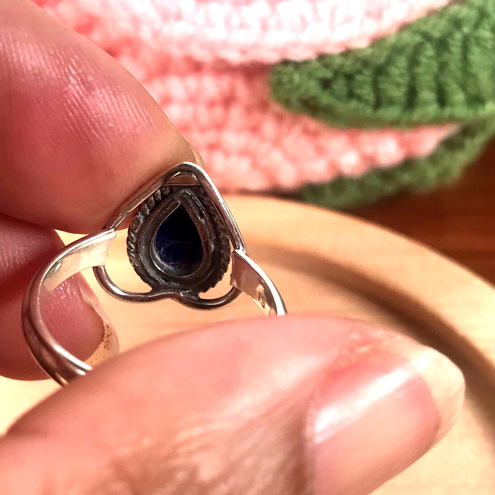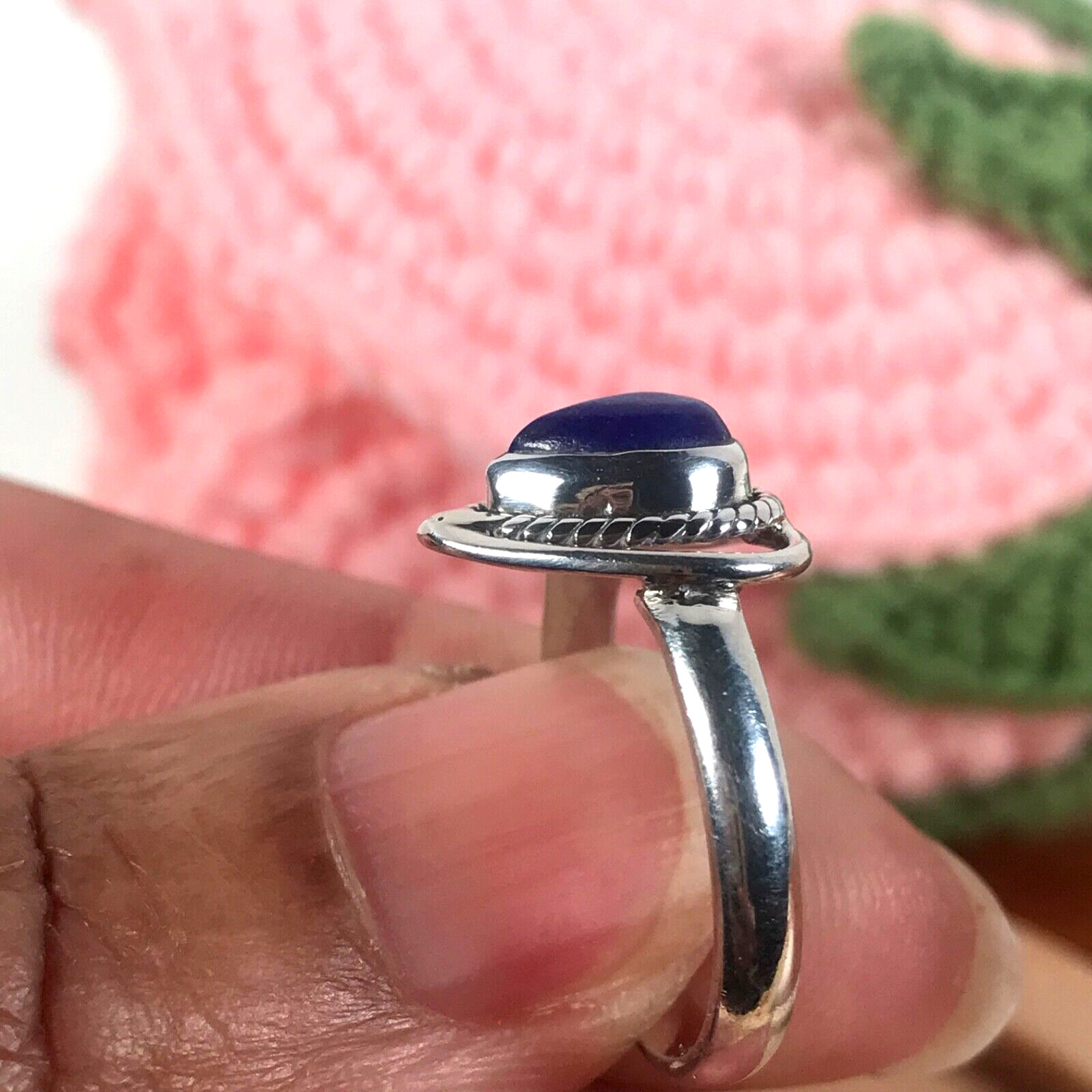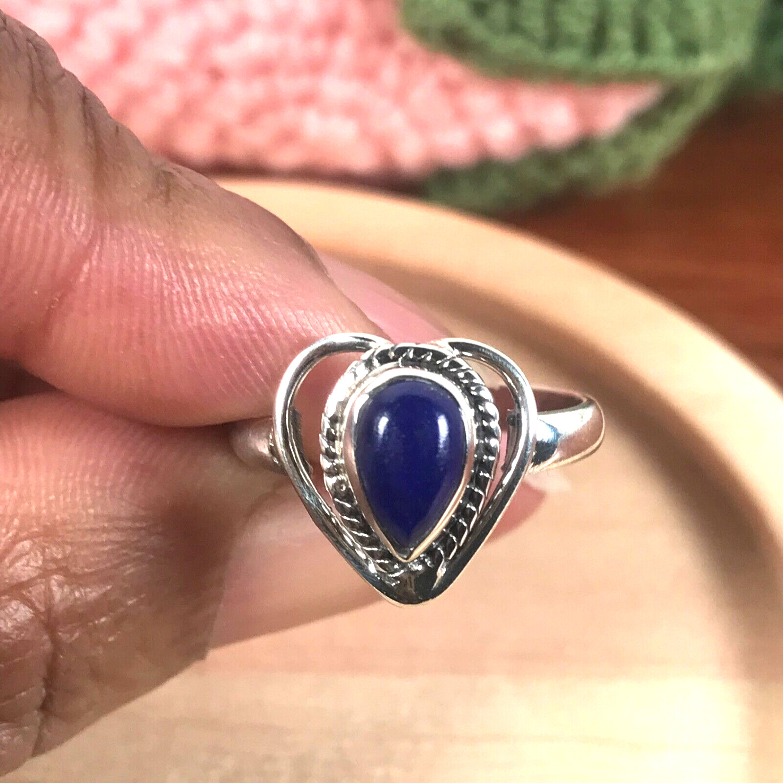 как выглядит 925 Sterling Silver Blue Lapis Lazuli Gemstone Ring-Heart Pear - Size 7.5 фото