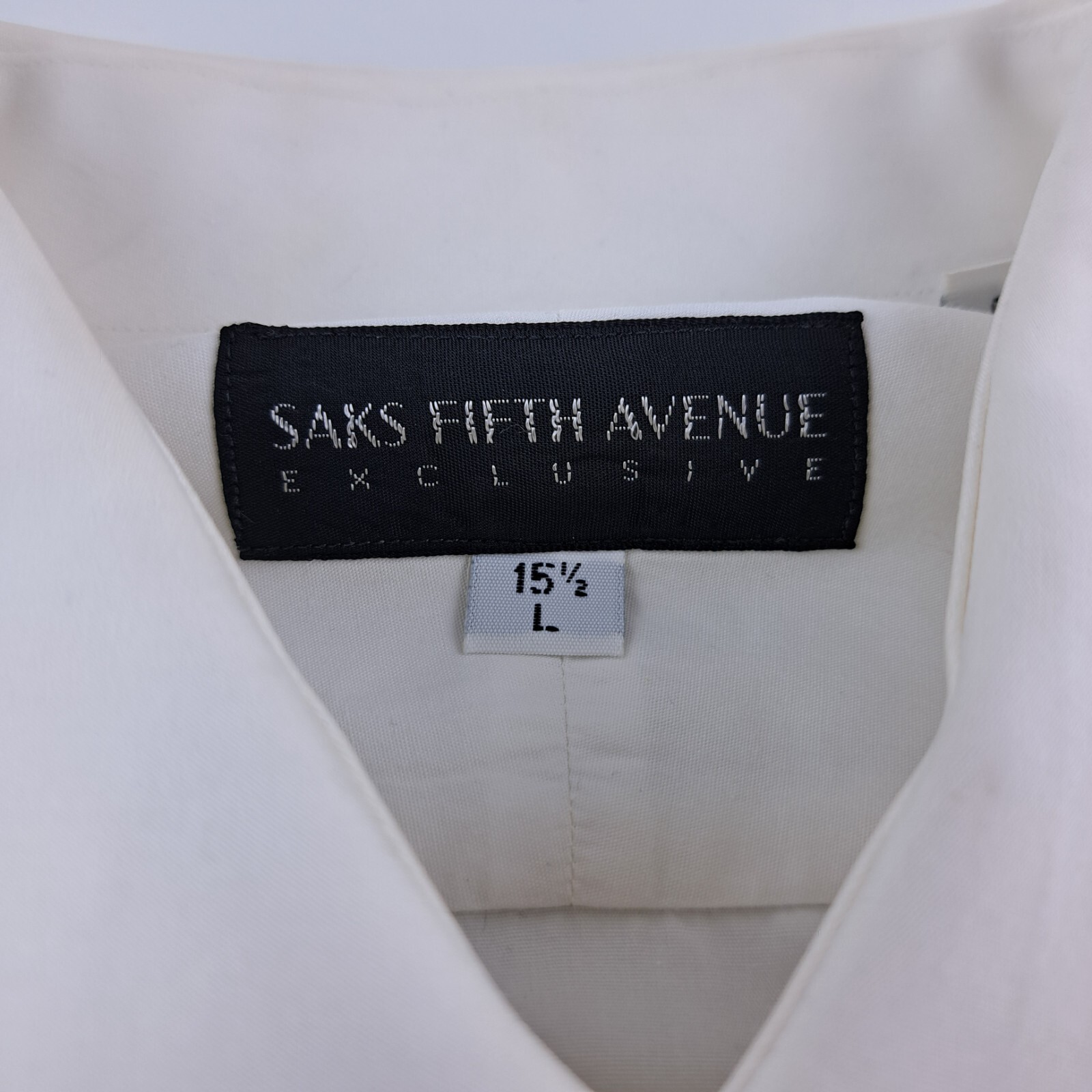 Saks Fifth Avenue Tuxedo Shirt Mens Size 15.5 Large White Button Front Pleated