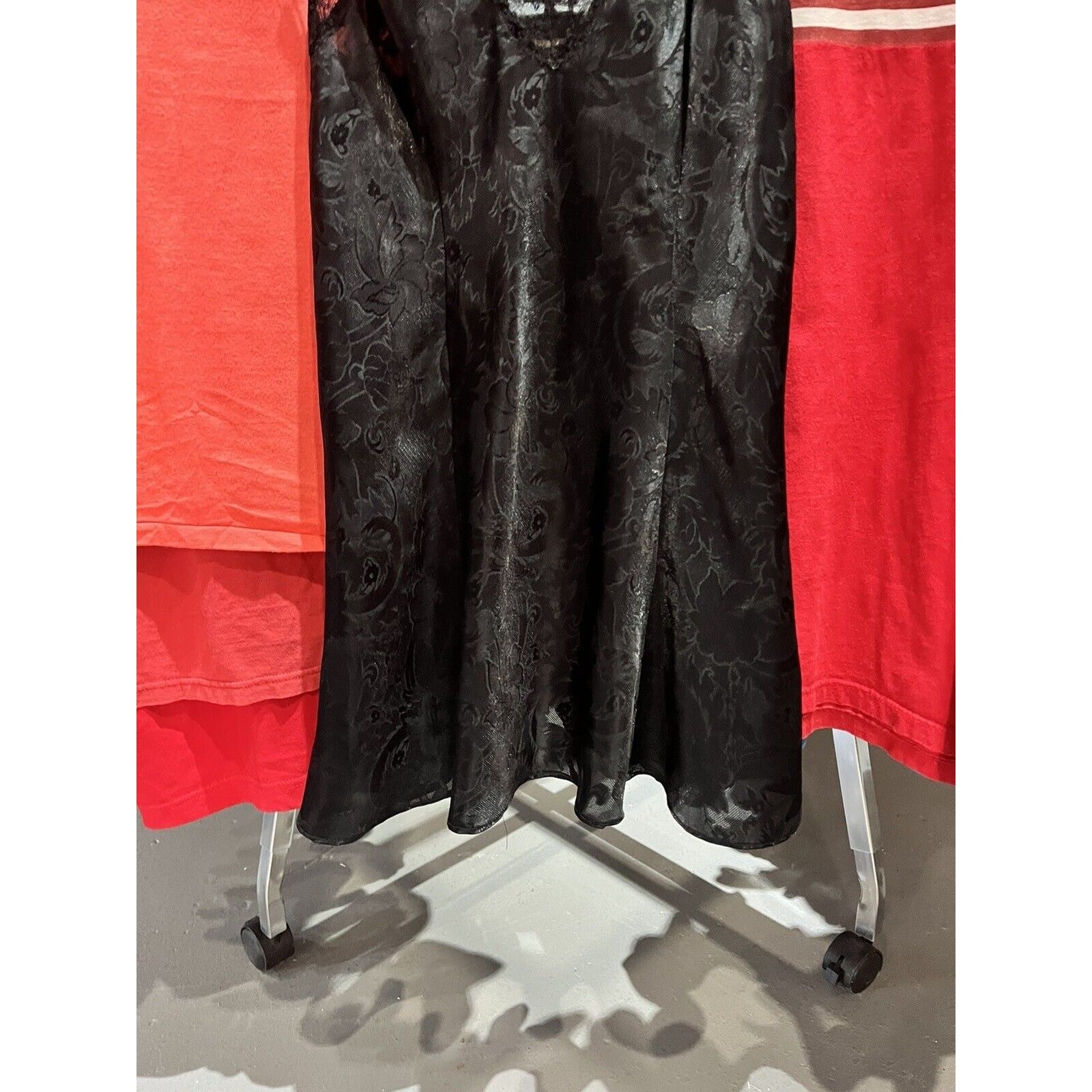 Vintage Victorias Secret Gold Label Black Paisley Lace Trim Slip Chemise Dress M