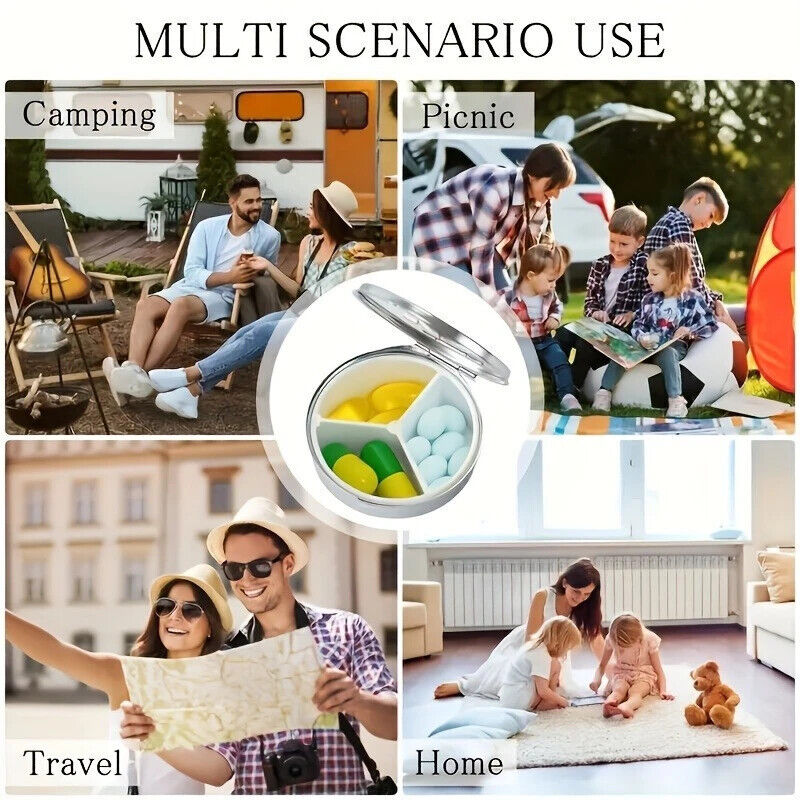 3 Compartment Metal Medicine Pill Box Organizer, Pocket Travel Size Ideal Gift