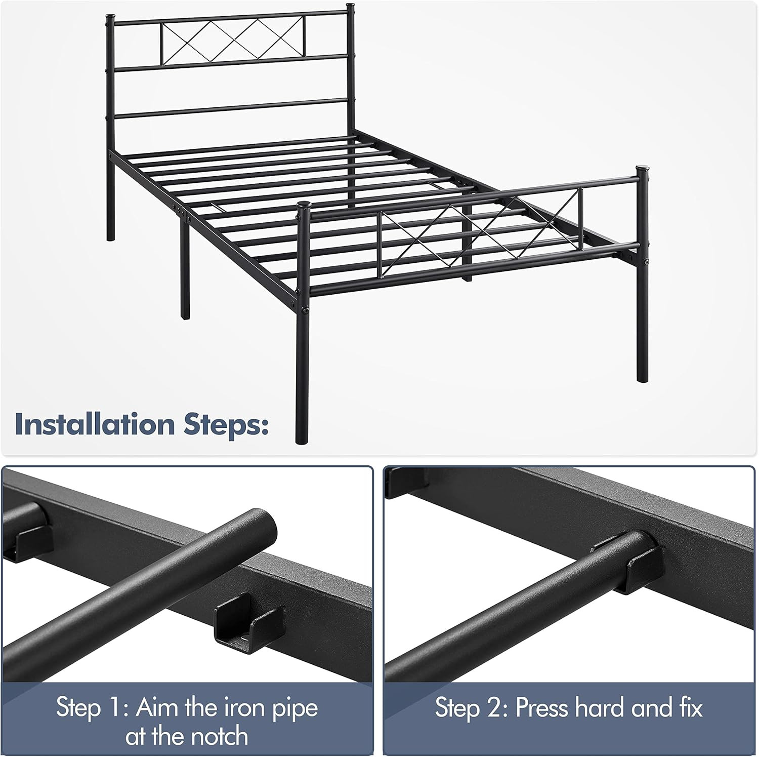 Twin 13 Inch Black Industrial Platform Metal Bed Frame with Headboard and Footbo