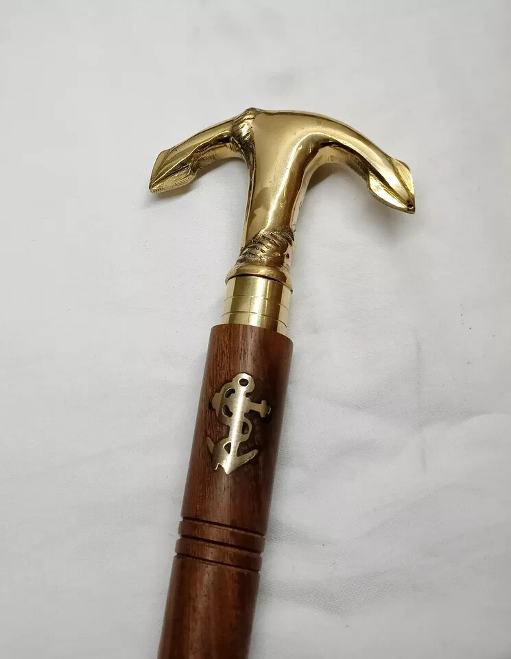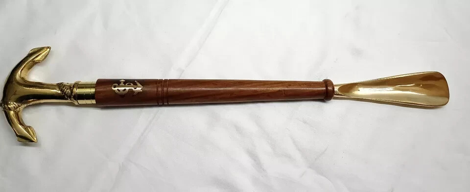 Shoe Horn Brass Vintage Handmade Anchor Handle Solid Wooden Designer Style