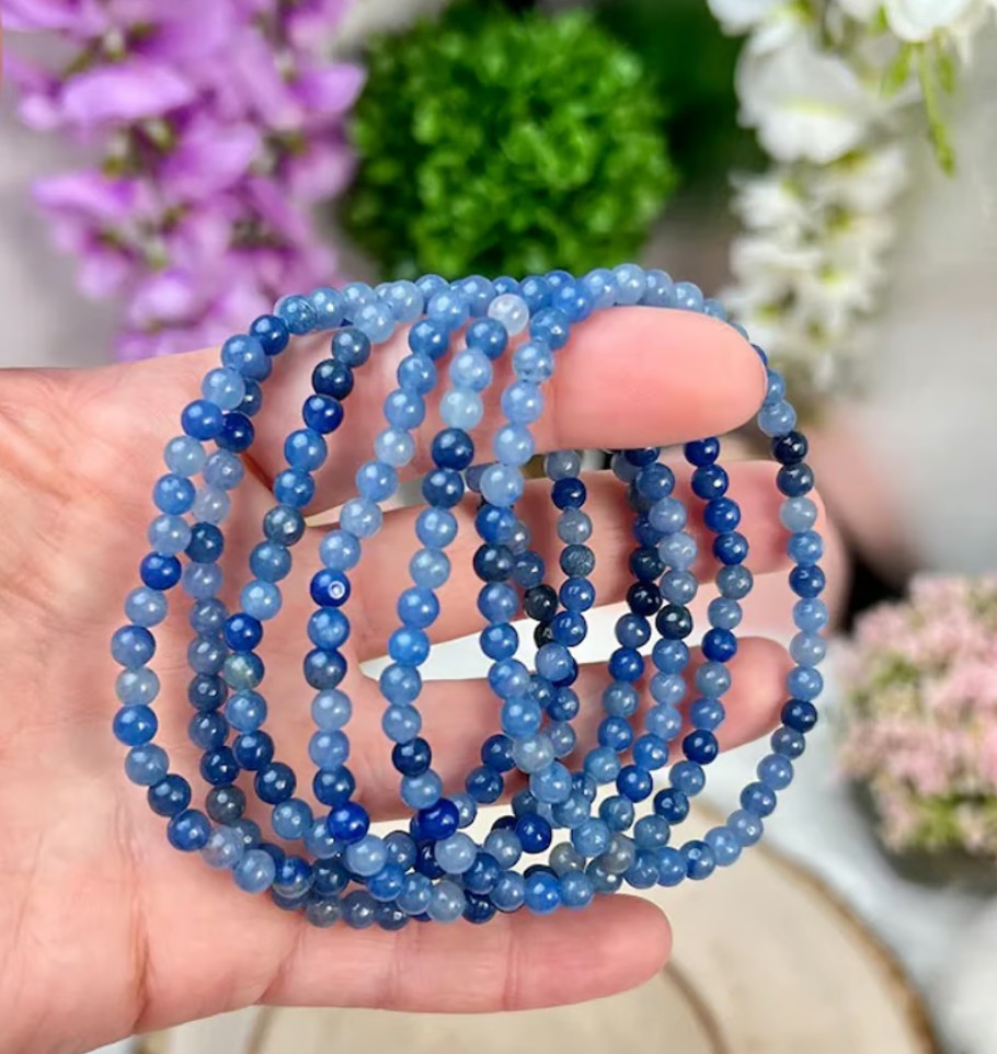 Natural Blue Aventurine 4mm Beaded Crystal Healing Stretch Handmade Bracelet