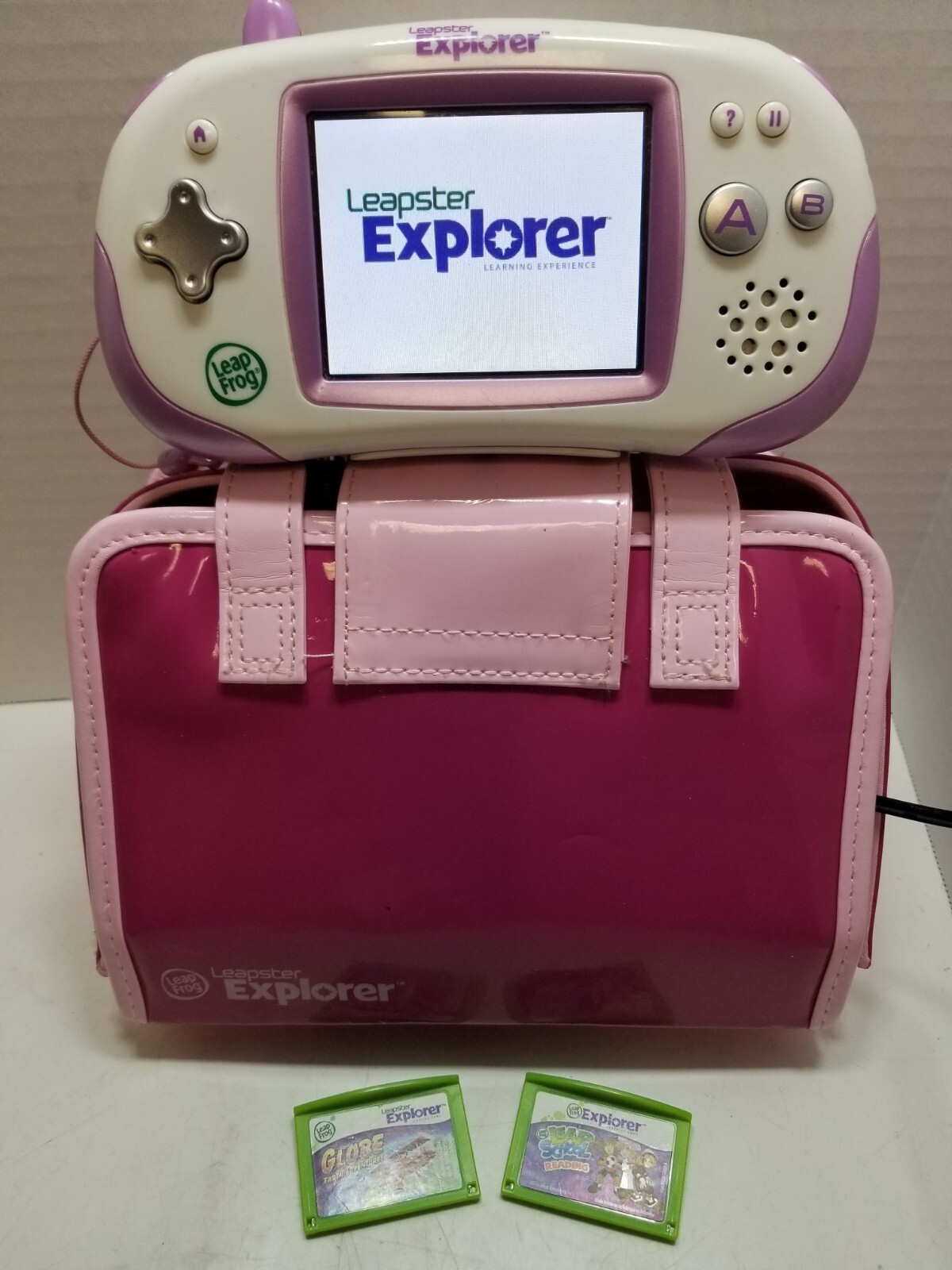 LeapFrog Leapster Explorer Handheld System Purple Case 2 Learning Games Read