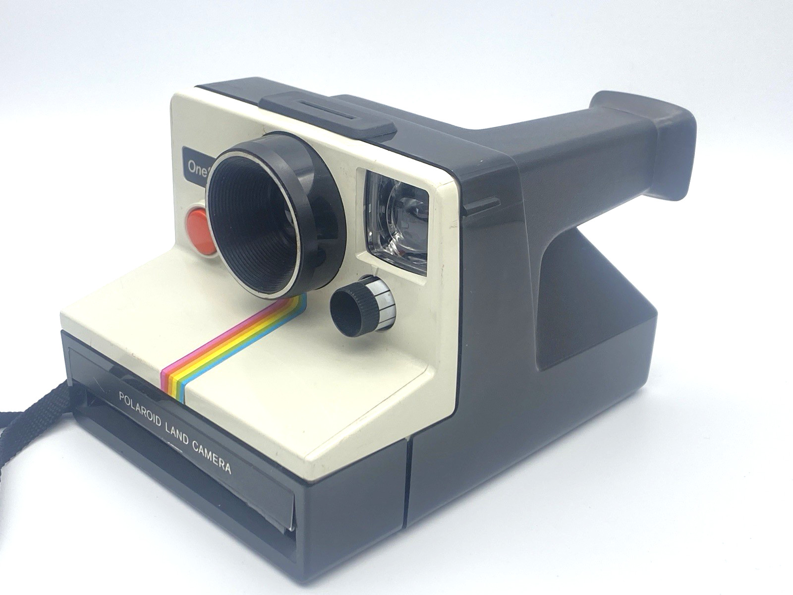 White Polaroid OneStep Camera Rainbow Stripe; Shutter fires