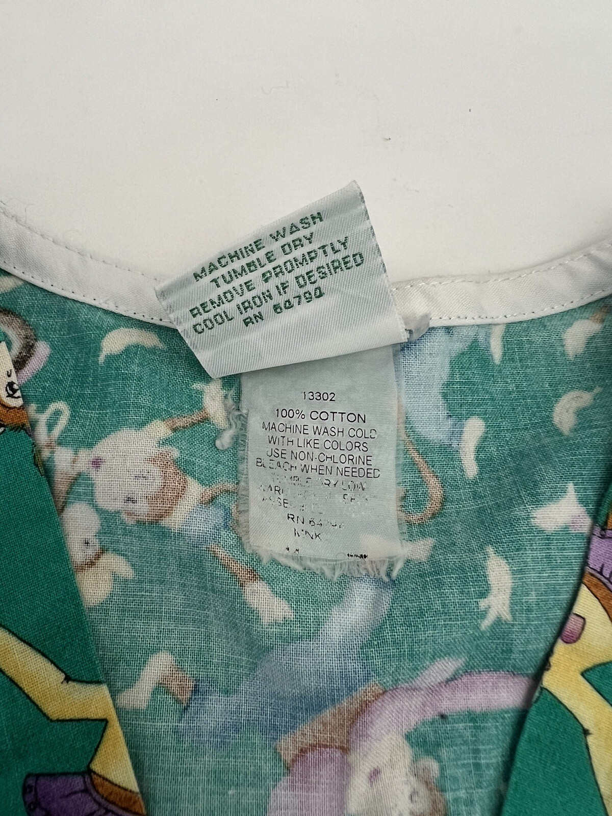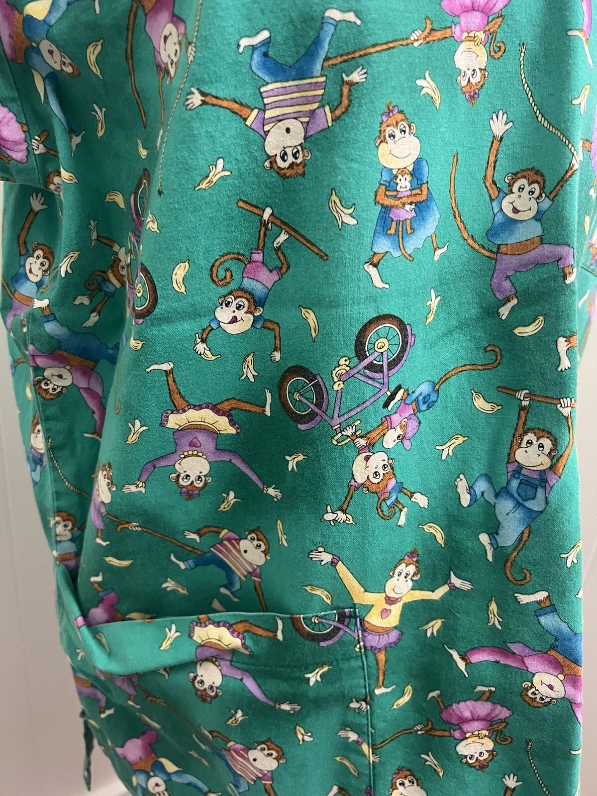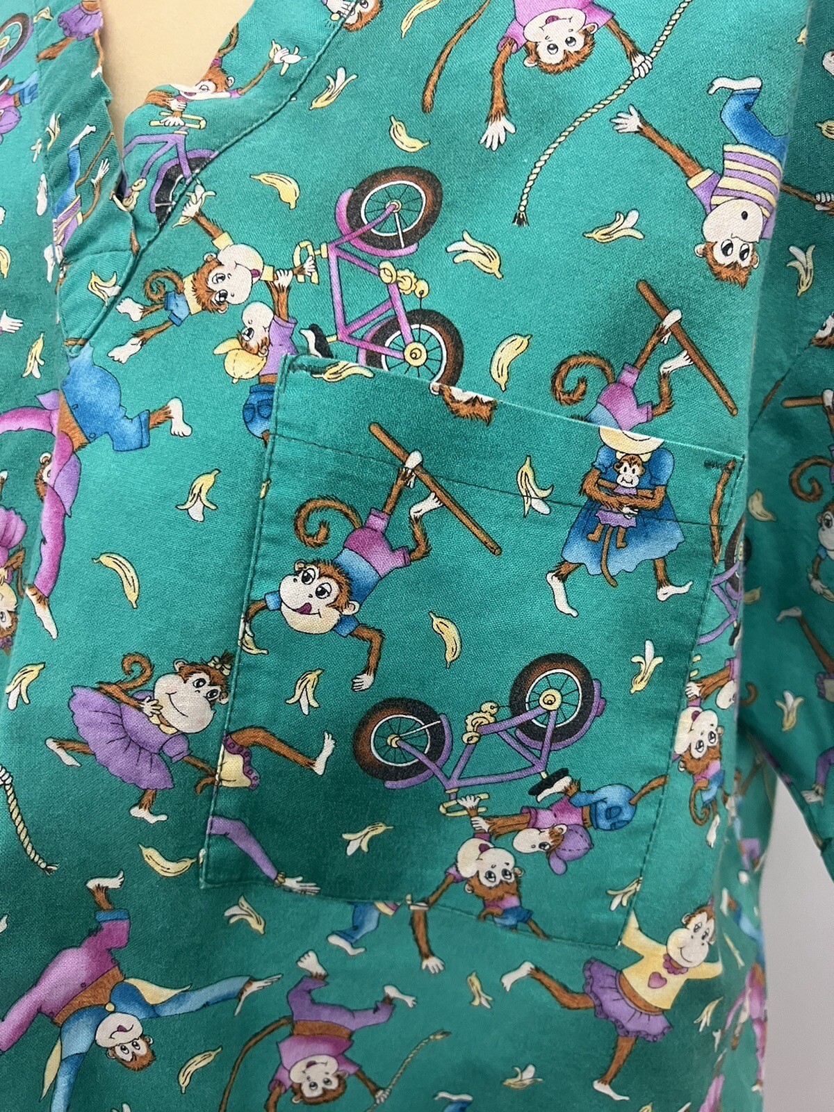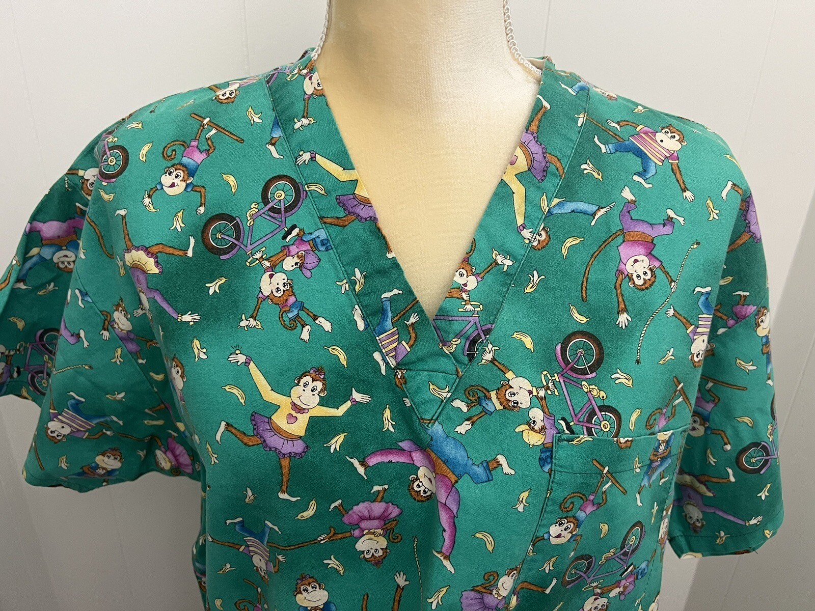 как выглядит Fresh Approach Monkey Scrub Top Size Medium Monkeys Play Bananas Green Medical фото