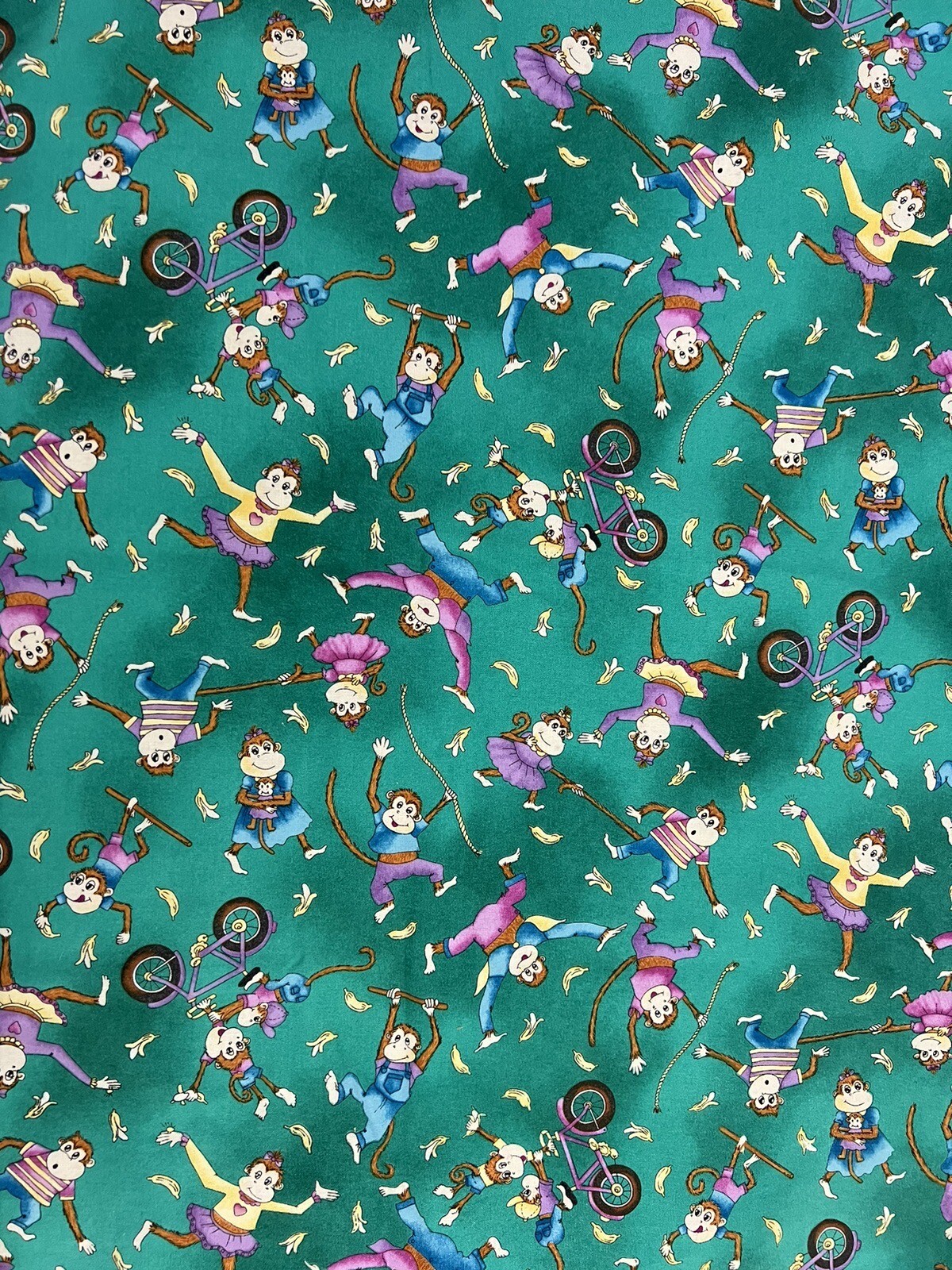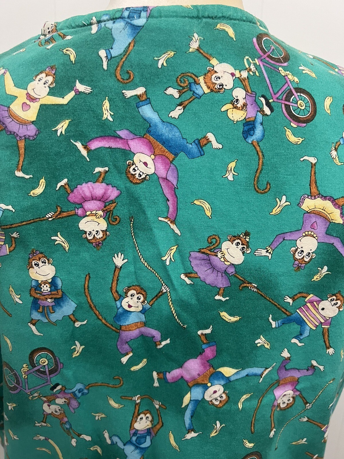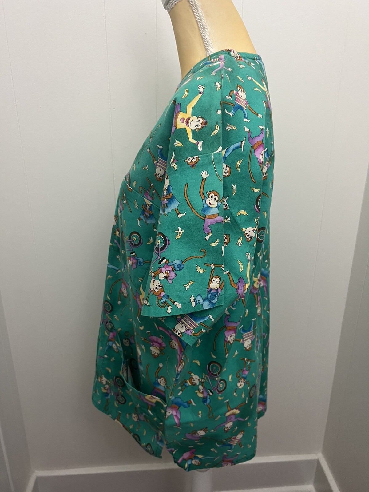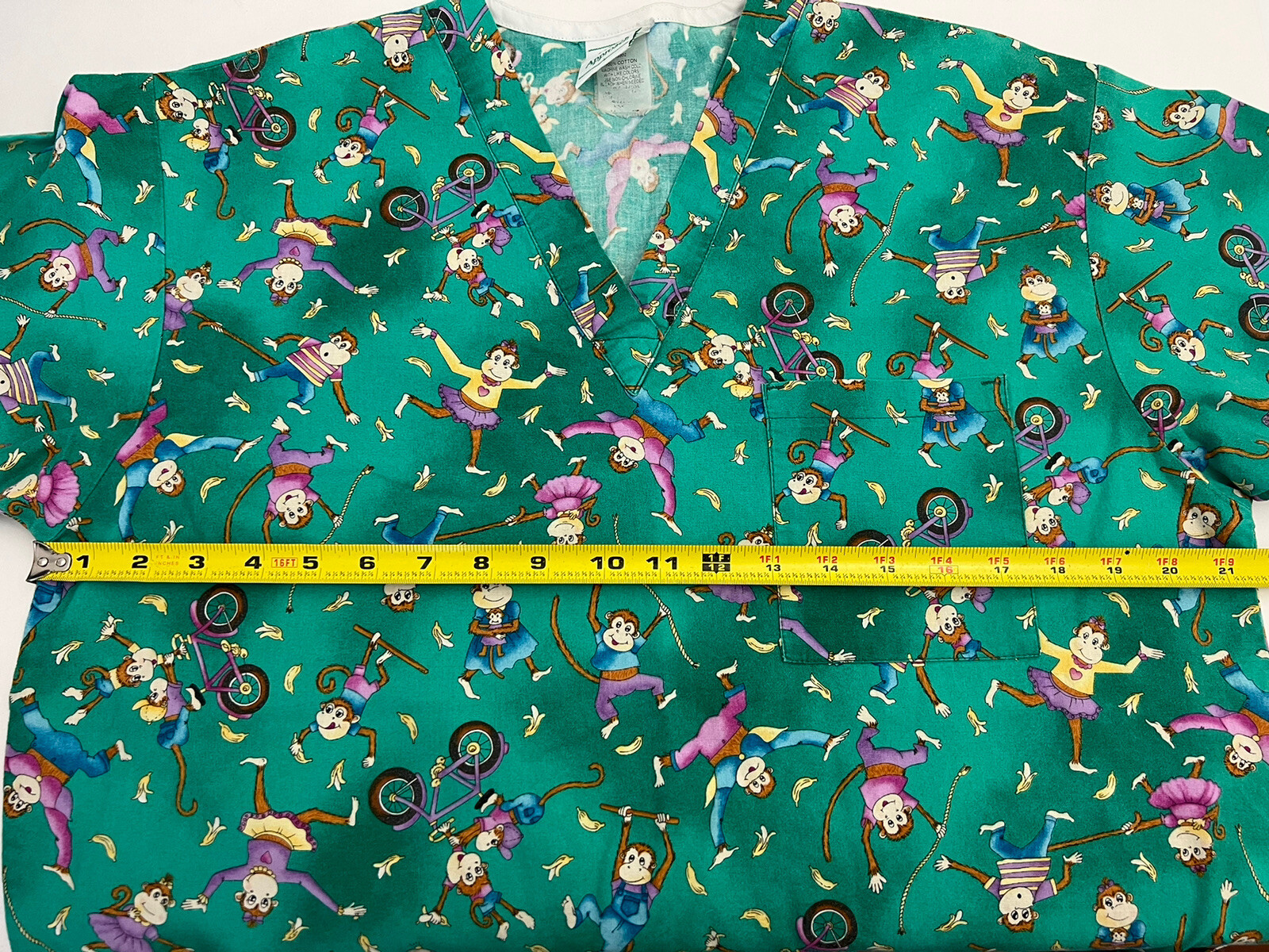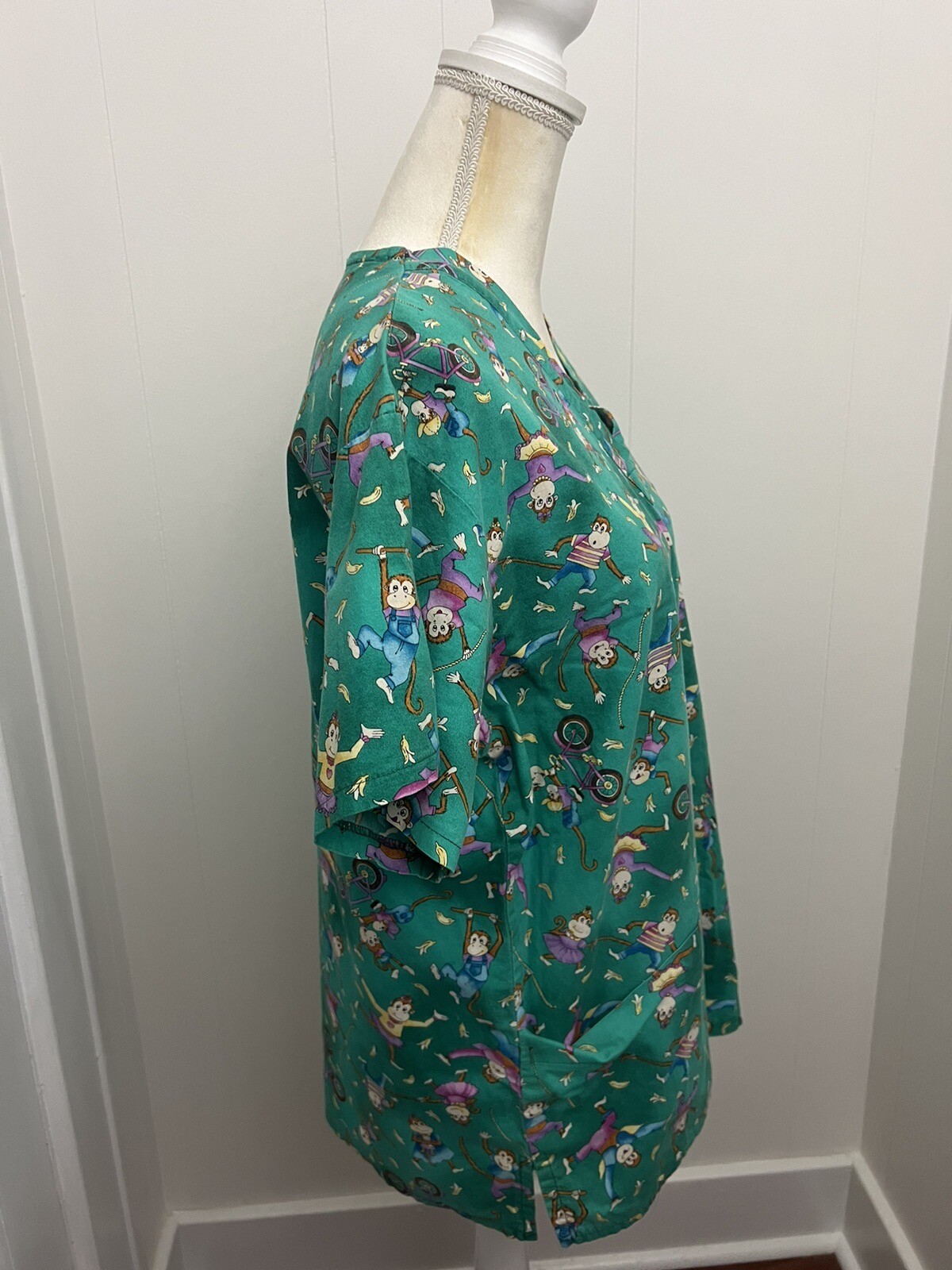 Fresh Approach Monkey Scrub Top Size Medium Monkeys Play Bananas Green Medical