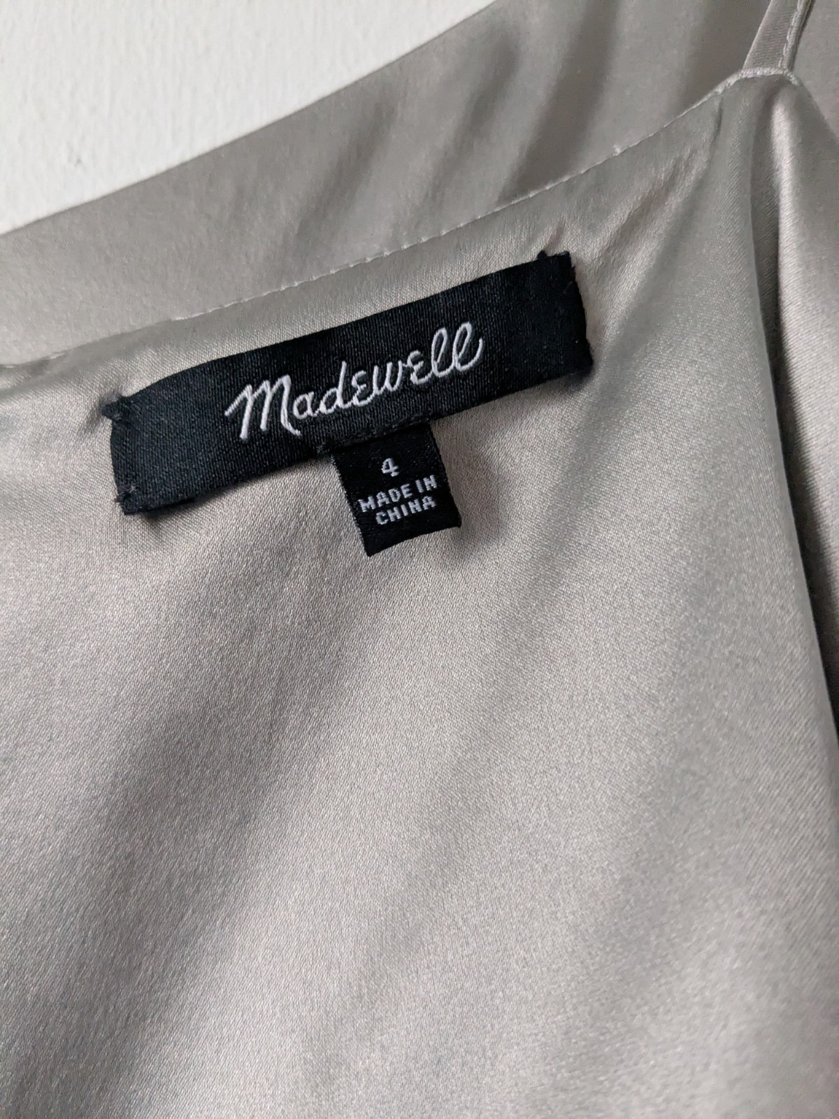 Madewell Eva Silver Silk Side-slit Slip Dress - size 4