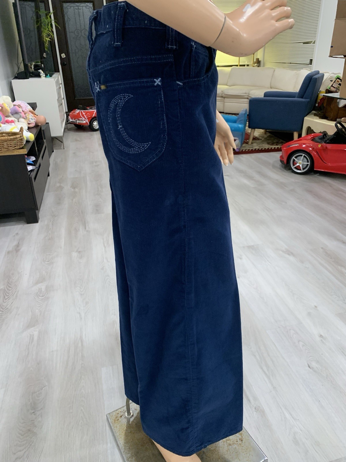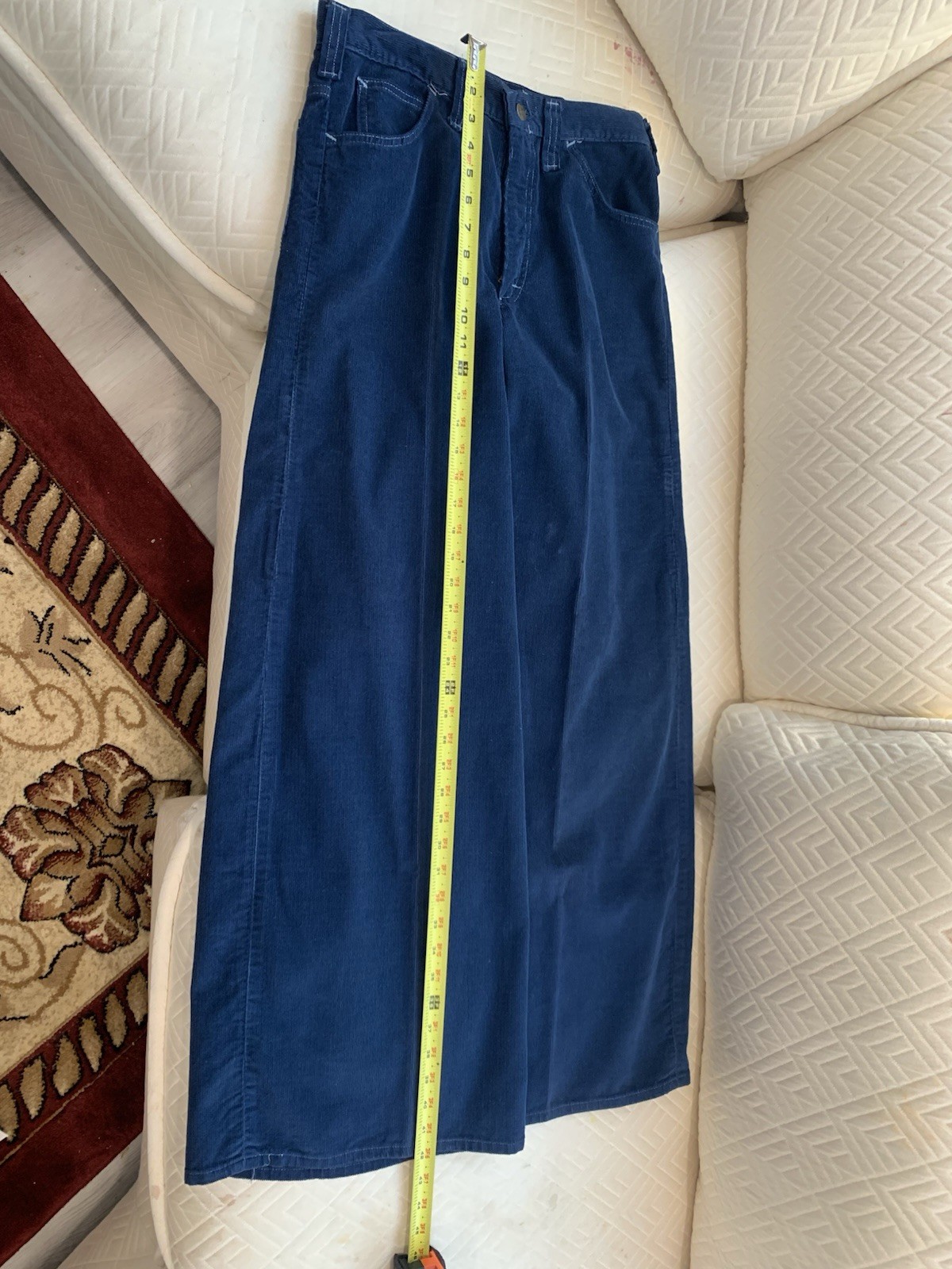 как выглядит Vintage 1970s Lee Blue Corduroy Super Wide Flare Leg Pants Moon Disco Original фото