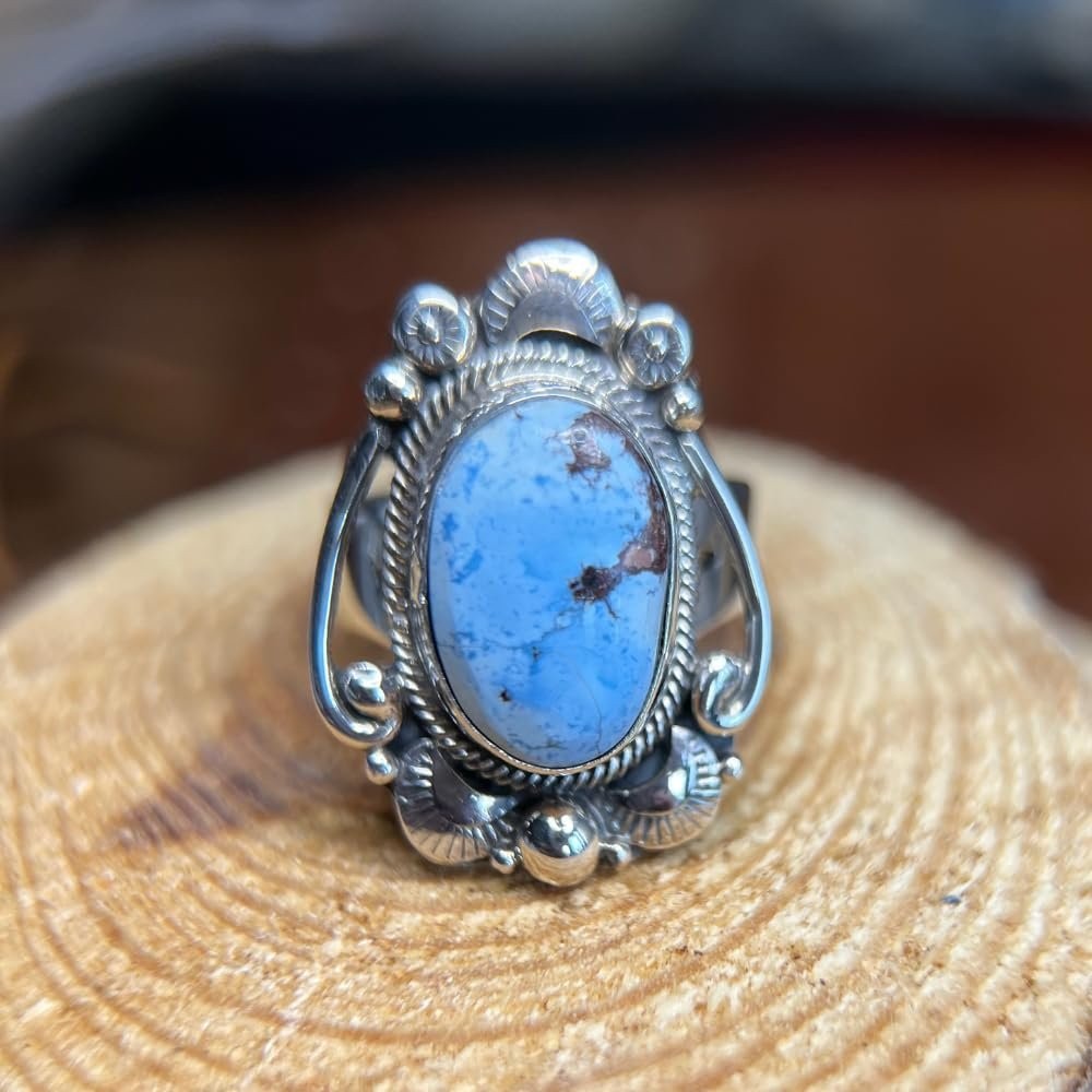 как выглядит Sterling Silver Size 9 Denim Lapis Ring  Intricate Southwest Design фото