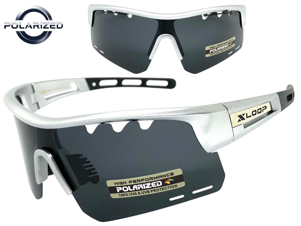 Sporty Biker Wrap Around Shield Fishing POLARIZED SUN GLASSES Large Silver Frame