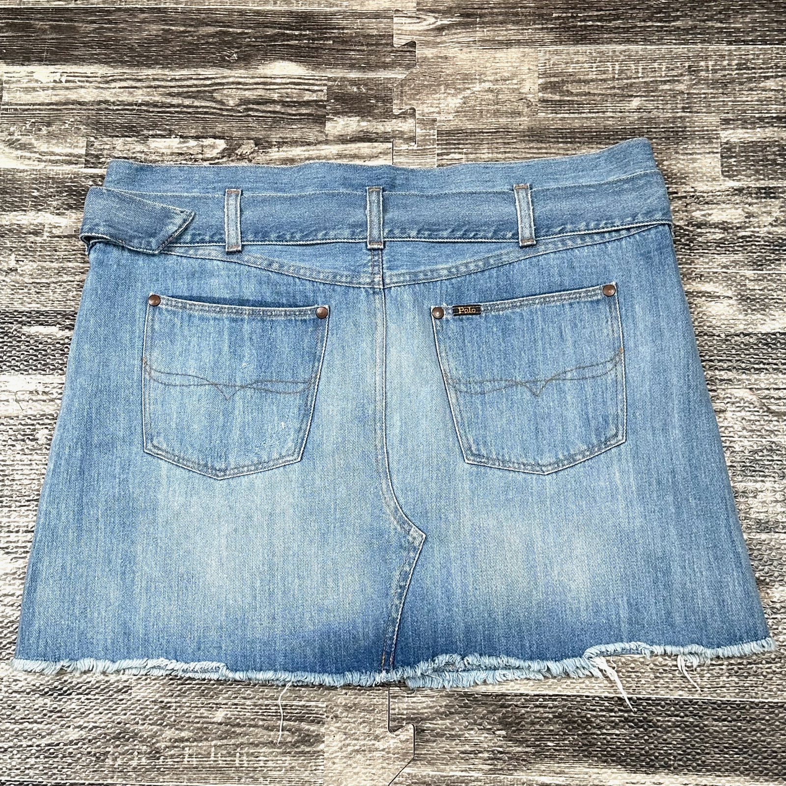 Polo Ralph Lauren Skirt Womens 30 Jean A Line Belted Mini Distressed Western Y2K