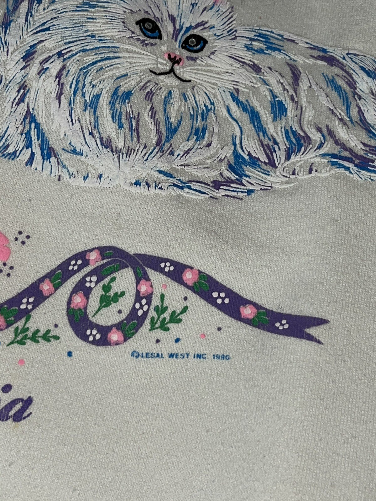 Vintage Lesal West 1993 Puffy Cat Collar Sweatshirt USA 50/50 M Artsy Collared