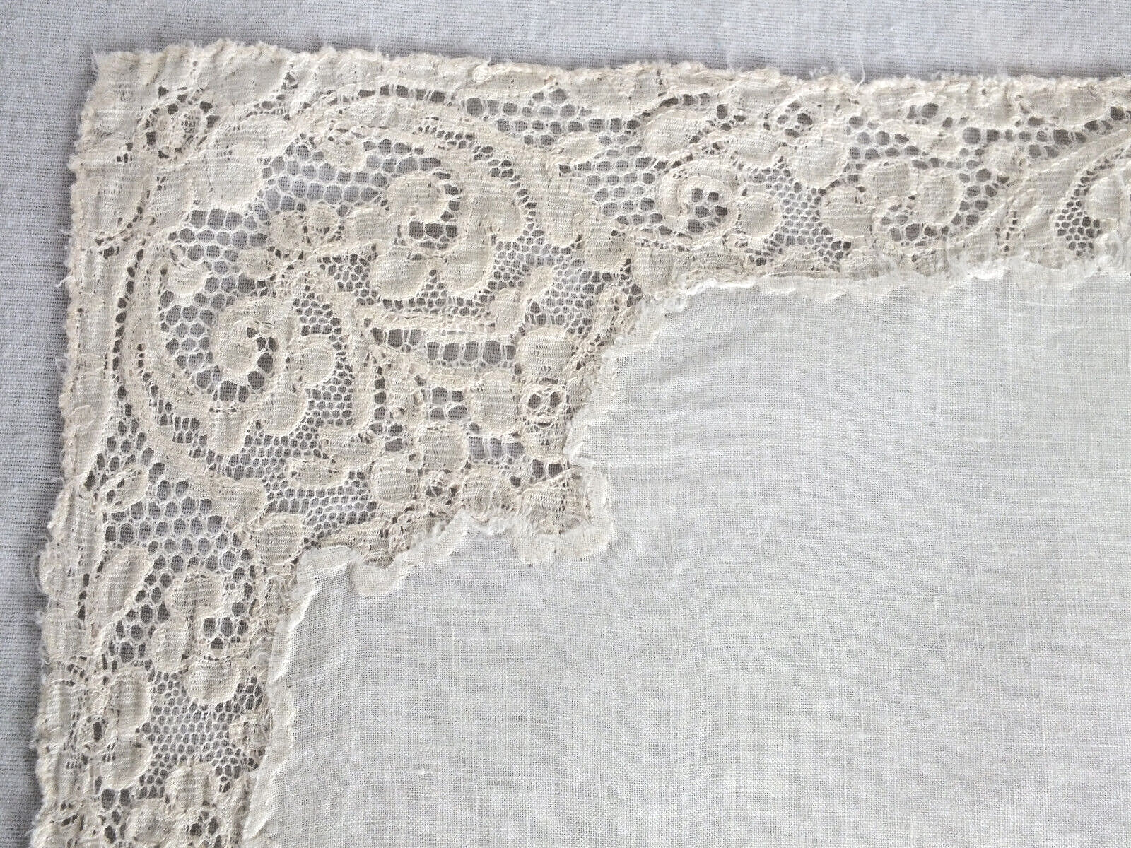 vintage cream alencon lace edge linen hanky 13 handkerchief embroidered rose
