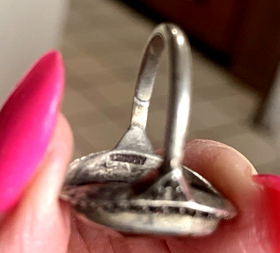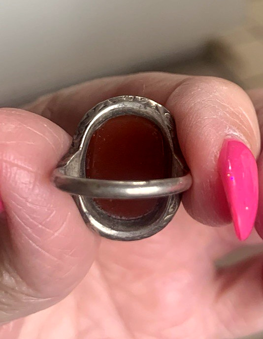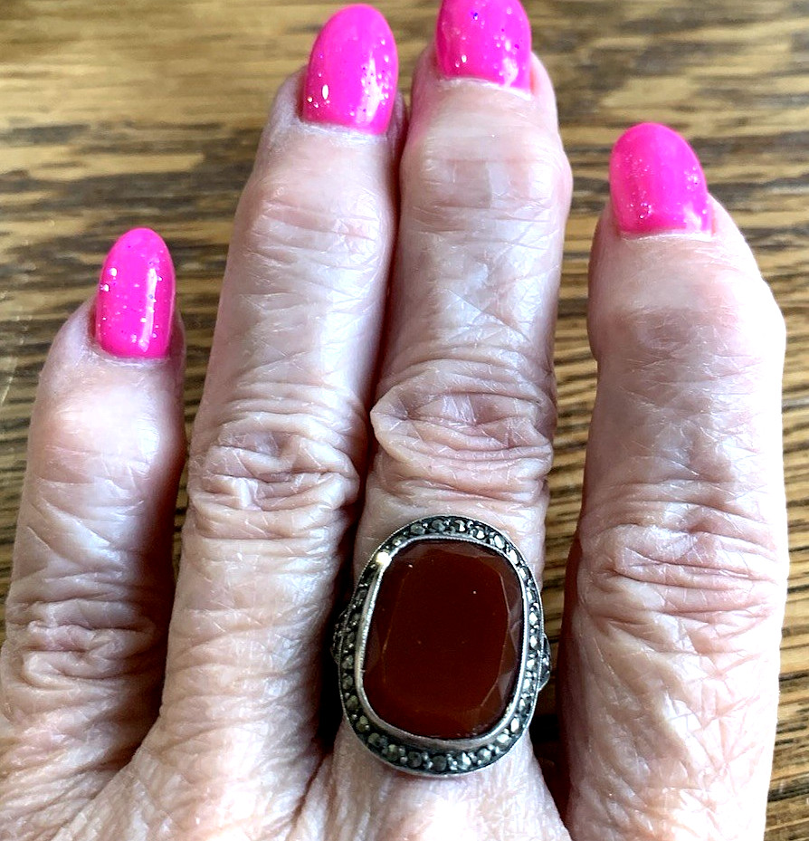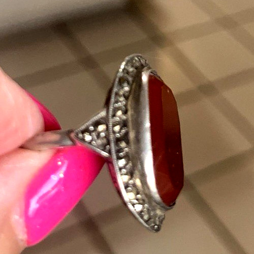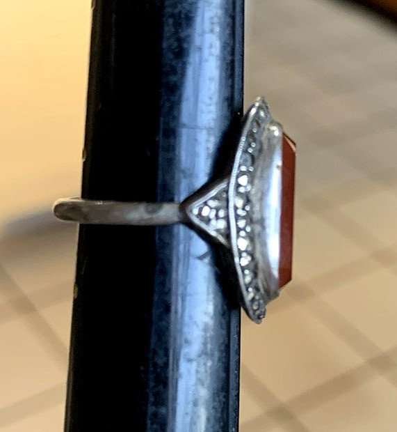 как выглядит Vintage German Sterling Silver Size 5 1/2 Carnelian Marcasite Ring 4.34 Grams фото