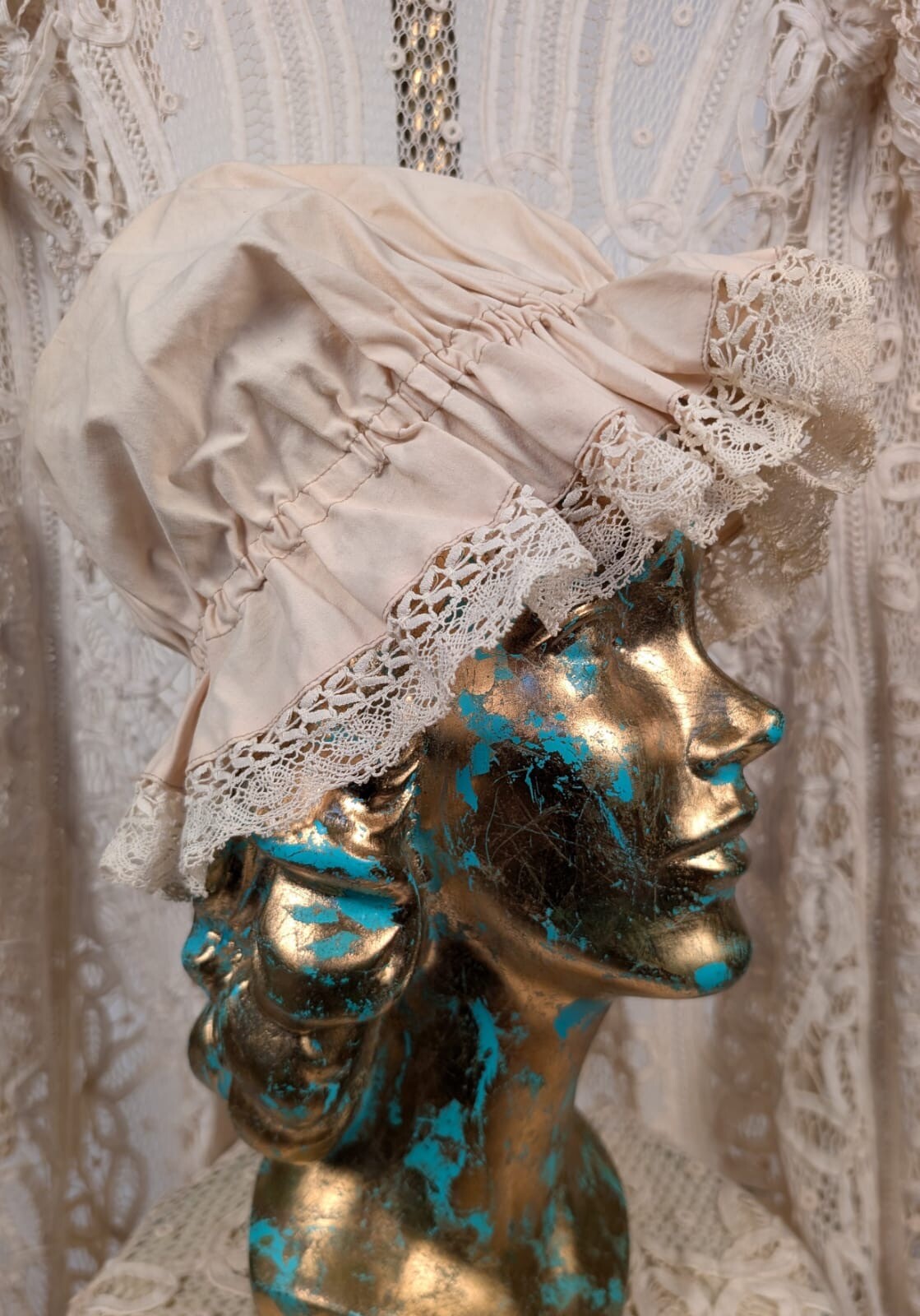 VINTAGE 1930 S LACE TRIMMED BED BONNET IN VICTORIAN STYLE