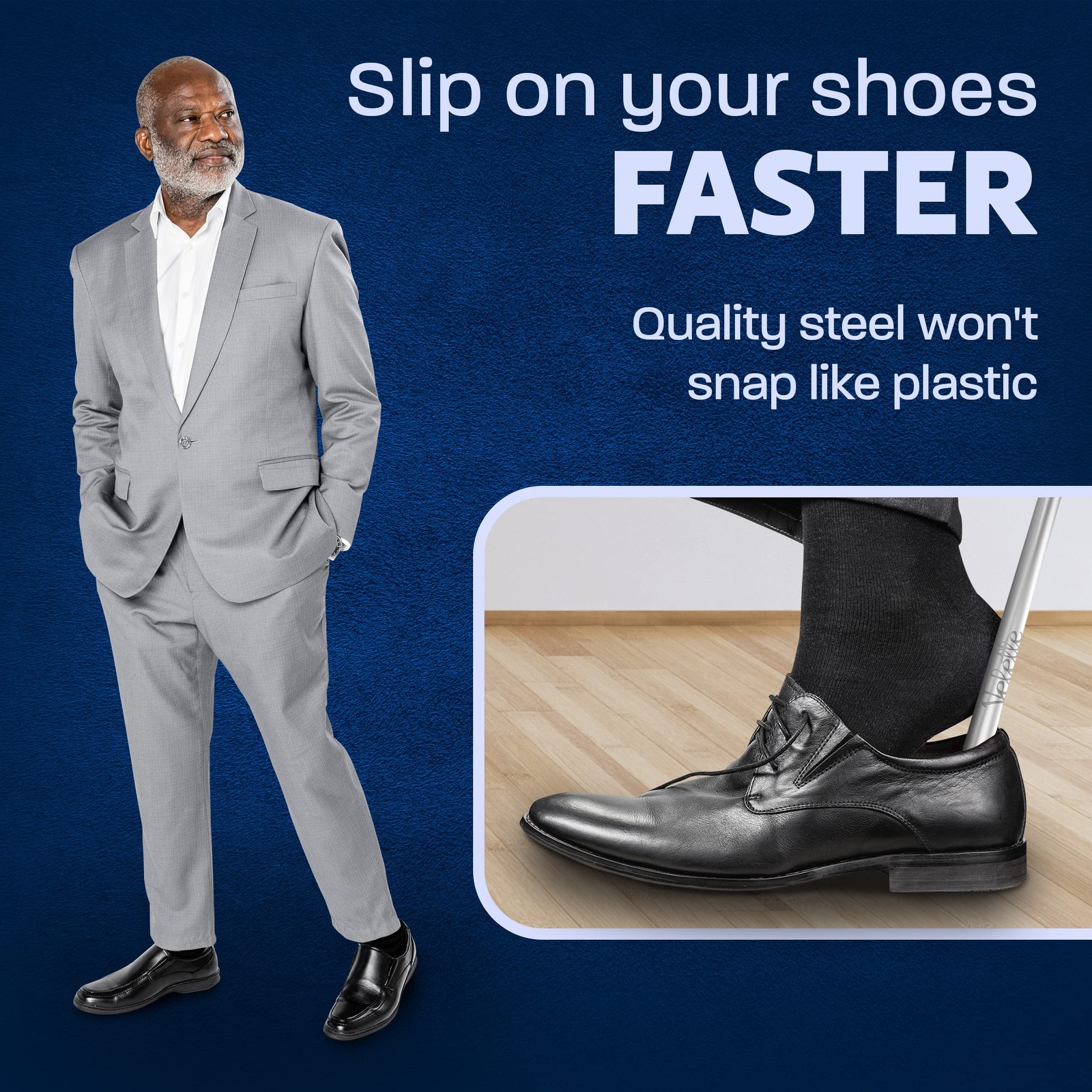 Velette Metal Shoe Horn Long Handle for Seniors Boots Set of 2 16.5, and 7.5