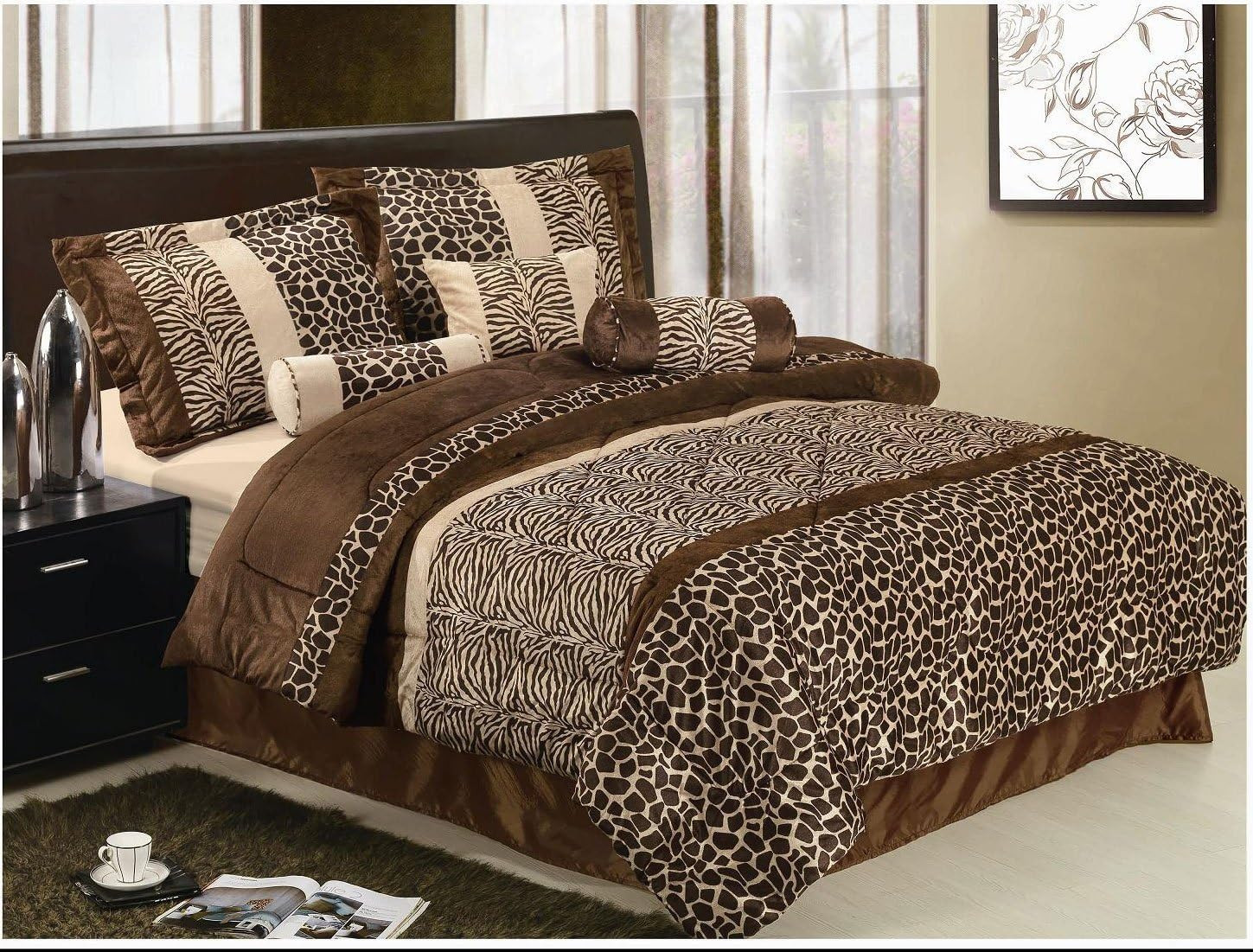 Grandlinen 7 Piece Brown Queen Size Safari Bed in a Bag Animal Print Zebra, Gira