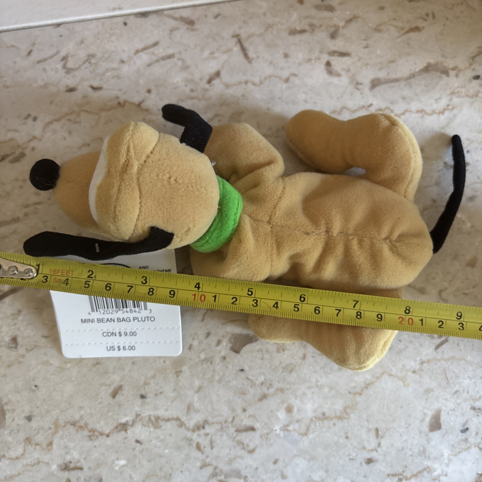 Disney Store Pluto Mini Bean Bag Plush lying down Stuffed Animal 8 L - NWT