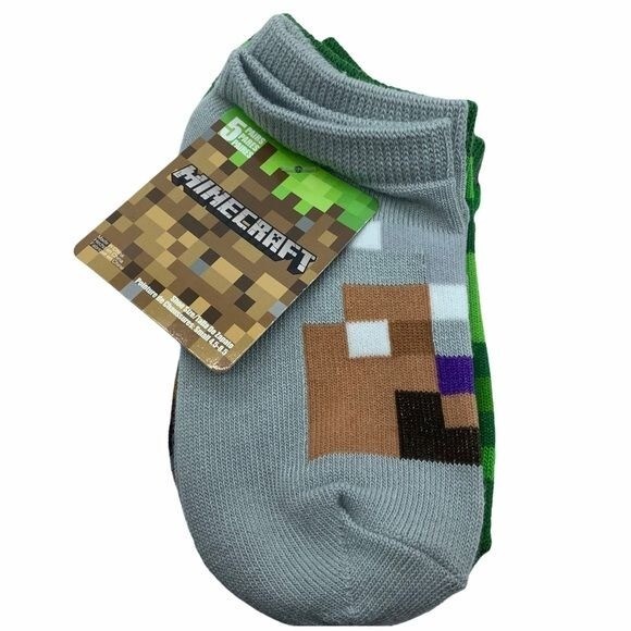 как выглядит Minecraft Socks Toddler Shoe Size 4.5-8.5 5 Pairs Ribbed Cuffs NEW NWT фото