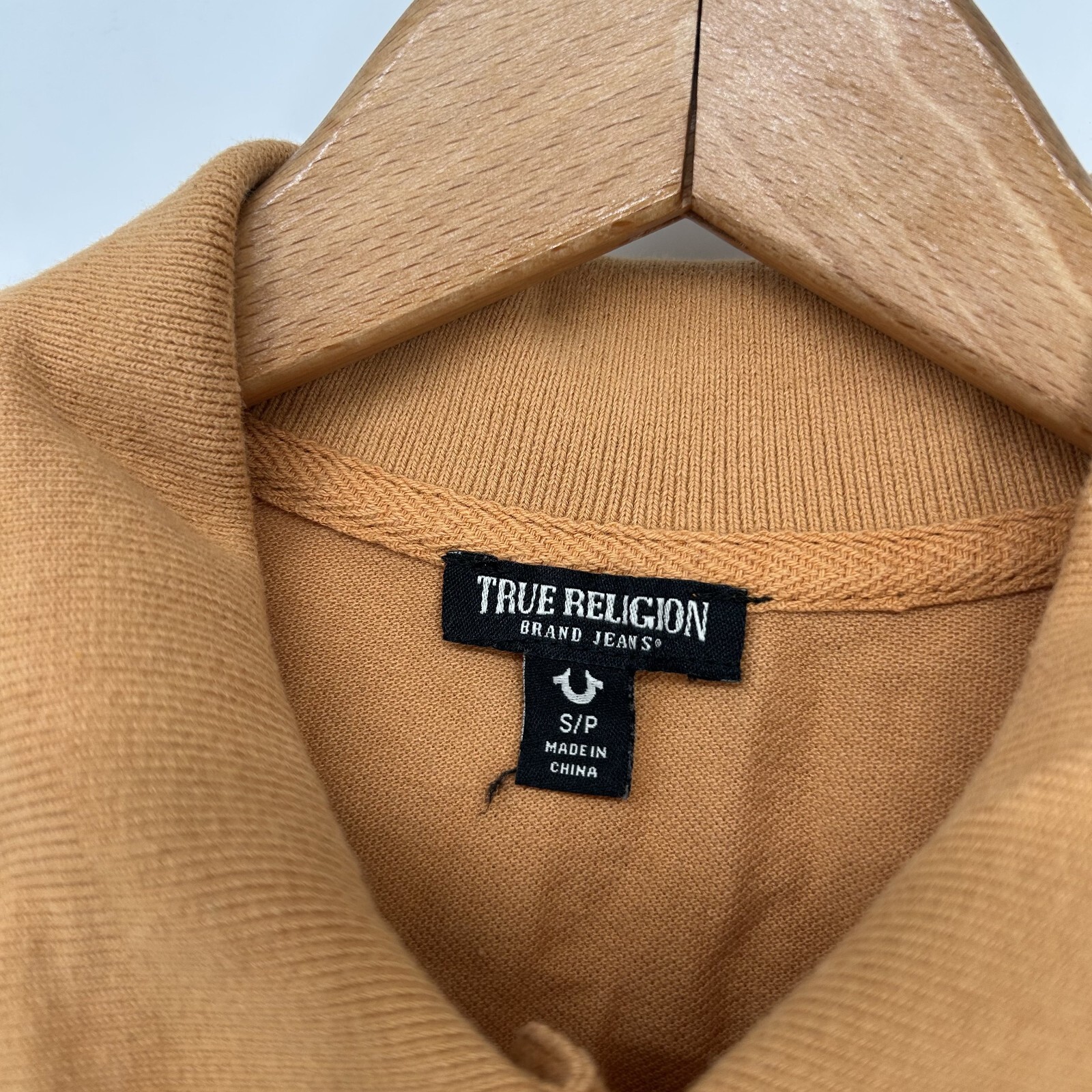 True Religion Polo Shirt Mens Small Orange Branded Collar Short Sleeve Horseshoe
