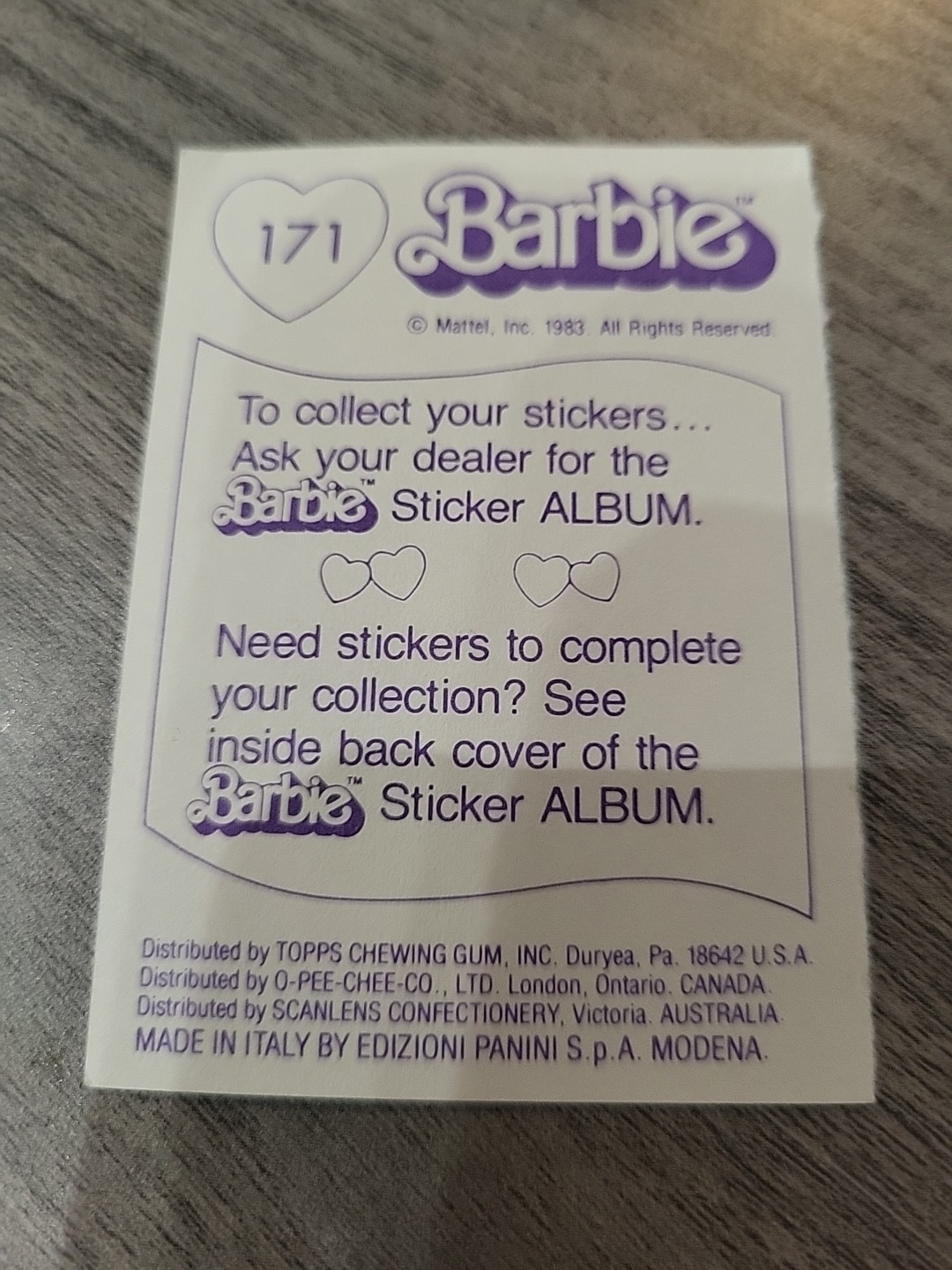 • Vintage 1983 PANINI BARBIE 171 ALBUM STICKER Sheet Mattel Barbie