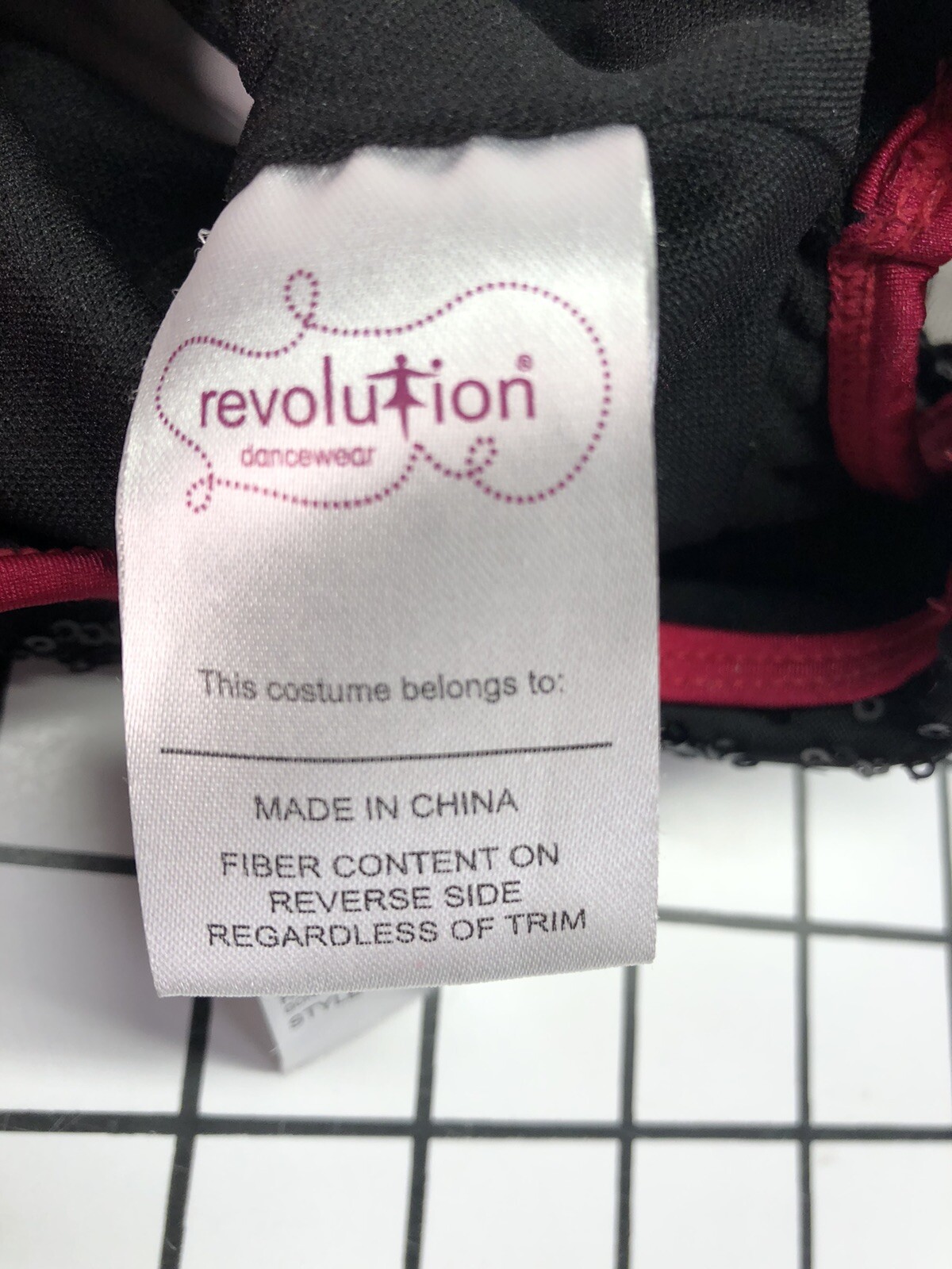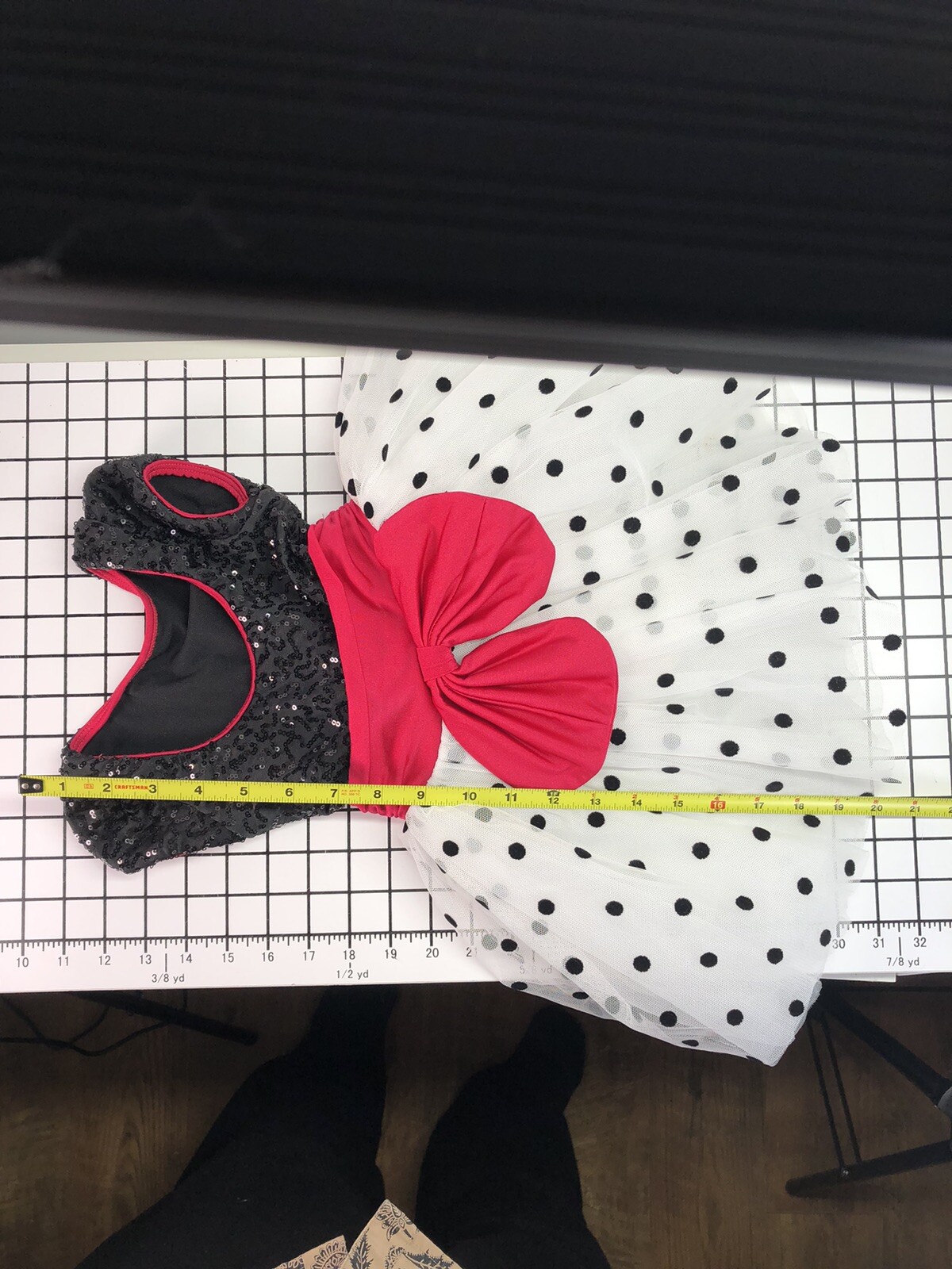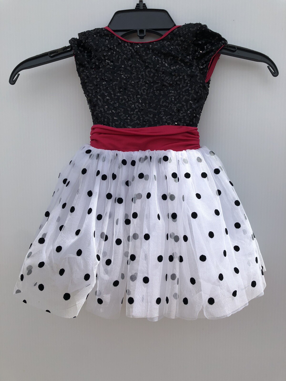 Black White Red Revolution Dance Costume Youth Child Girl X-small XS Polka Dot