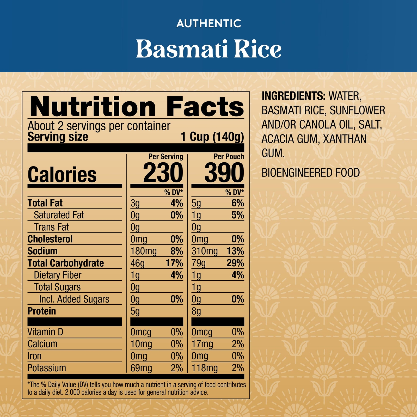 Ingredients: Water, Basmati Rice, *Sunflower Oil, Salt. *Organic