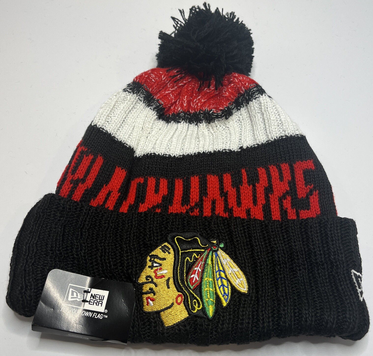 • New Era Chicago Blackhawks Beanie, White, Black, Red, NHL, OSFM