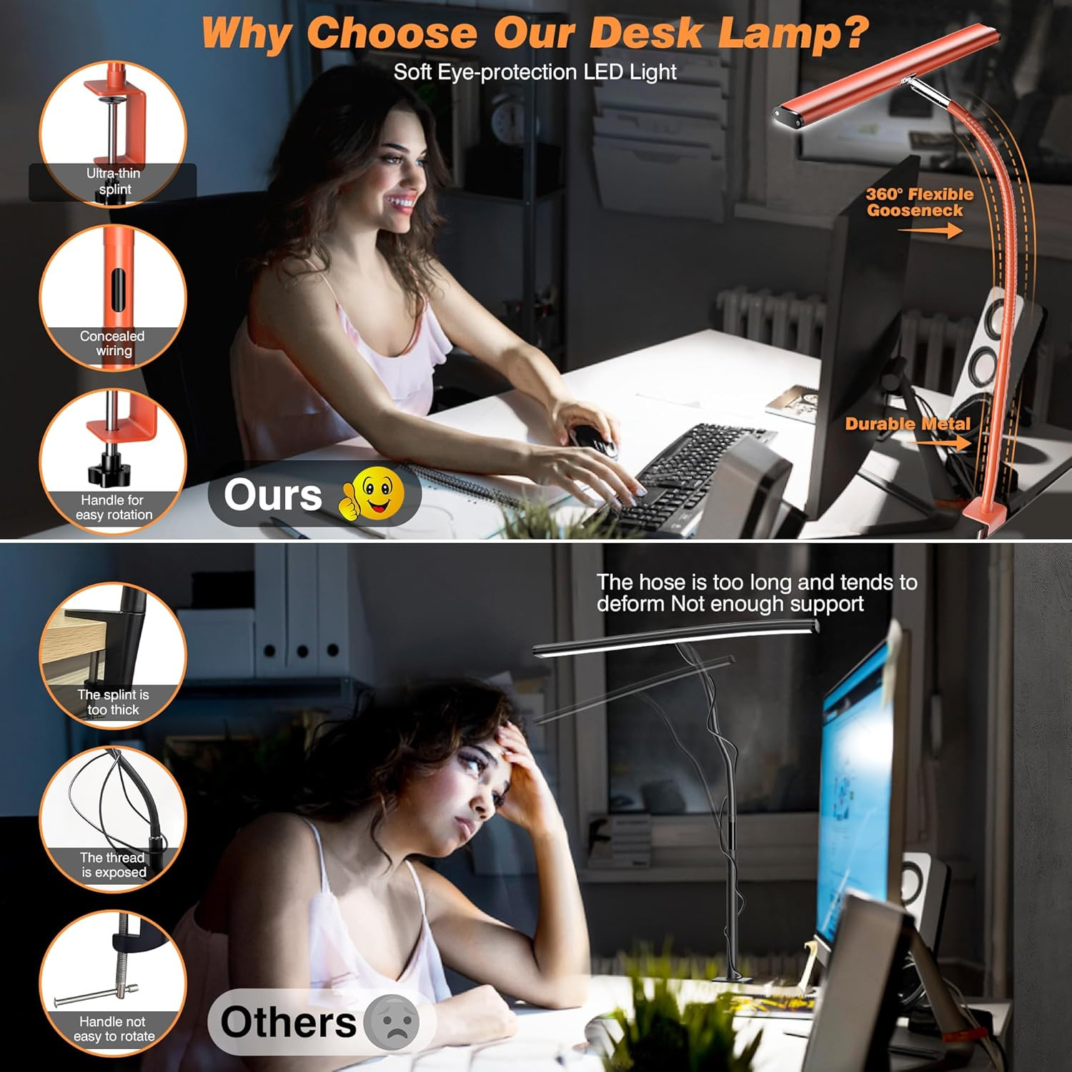LED Desk Lamp with Clamp - Eye-Caring Dimming Desk Light with Flexible Gooseneck