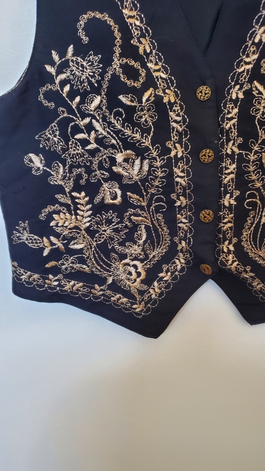 как выглядит VINTAGE THE LIMITED L Embroidered Vest Black Gold Layering 80s 90s Made In USA фото