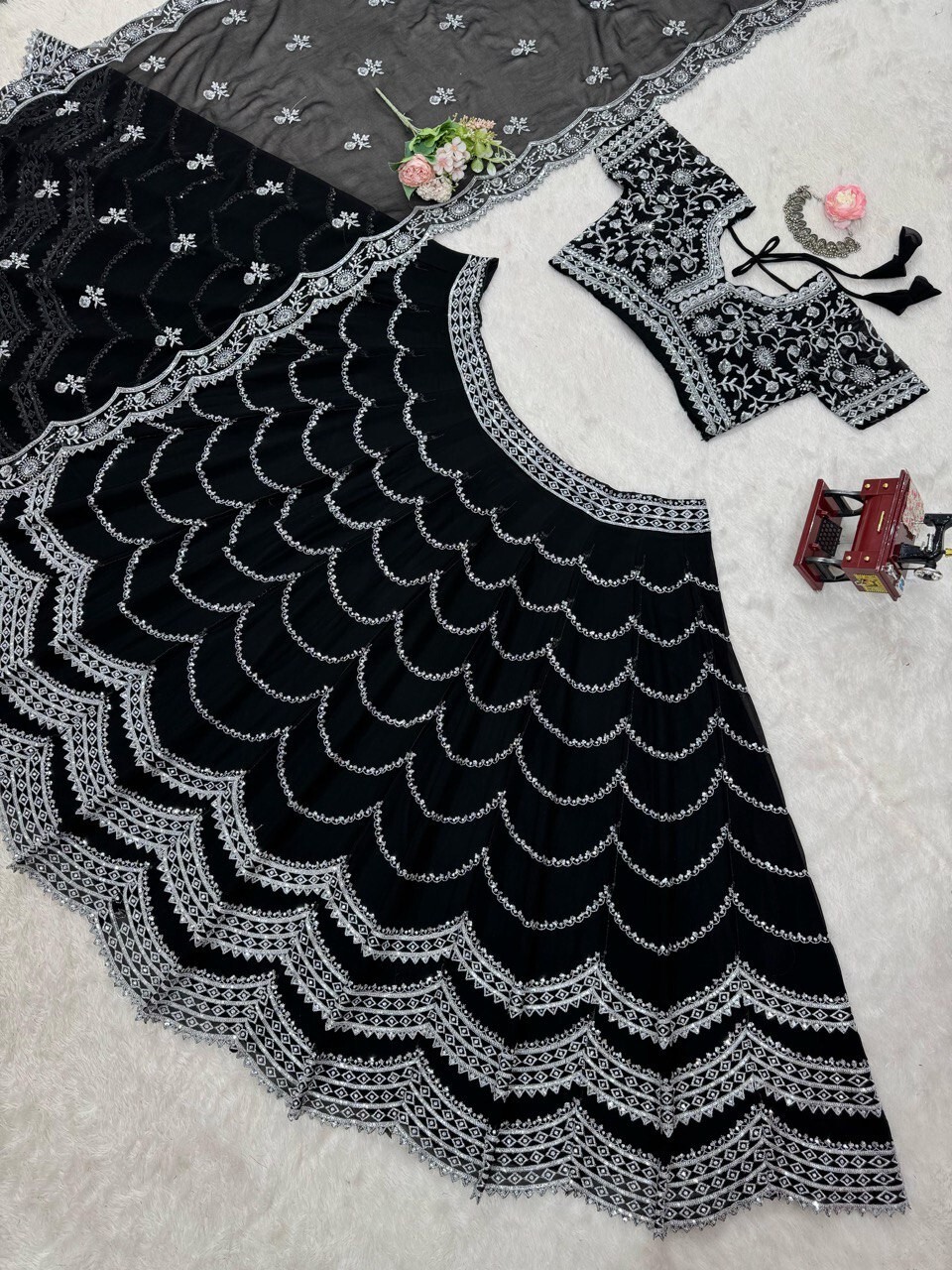 Designer Faux Georgette Lehenga Blouse Set with Sequence Work Semi-Stitched