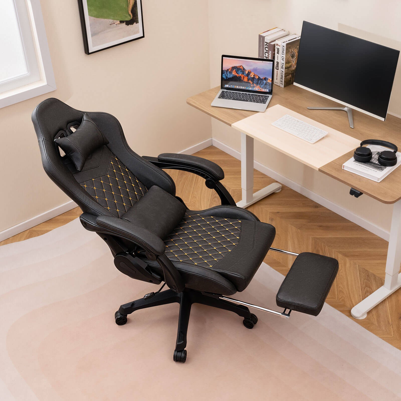 Gaming Chair with Footrest Ergonomic Video Game Computer Chair w/Headrest