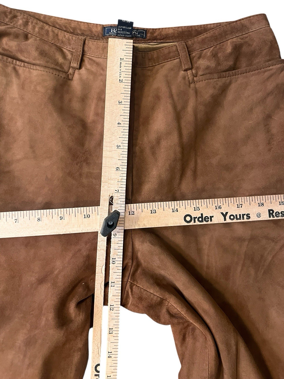 как выглядит HAROLDS Pants Womens Sz 6 Suede Leather Zip Front High Waisted Brown Vtg фото