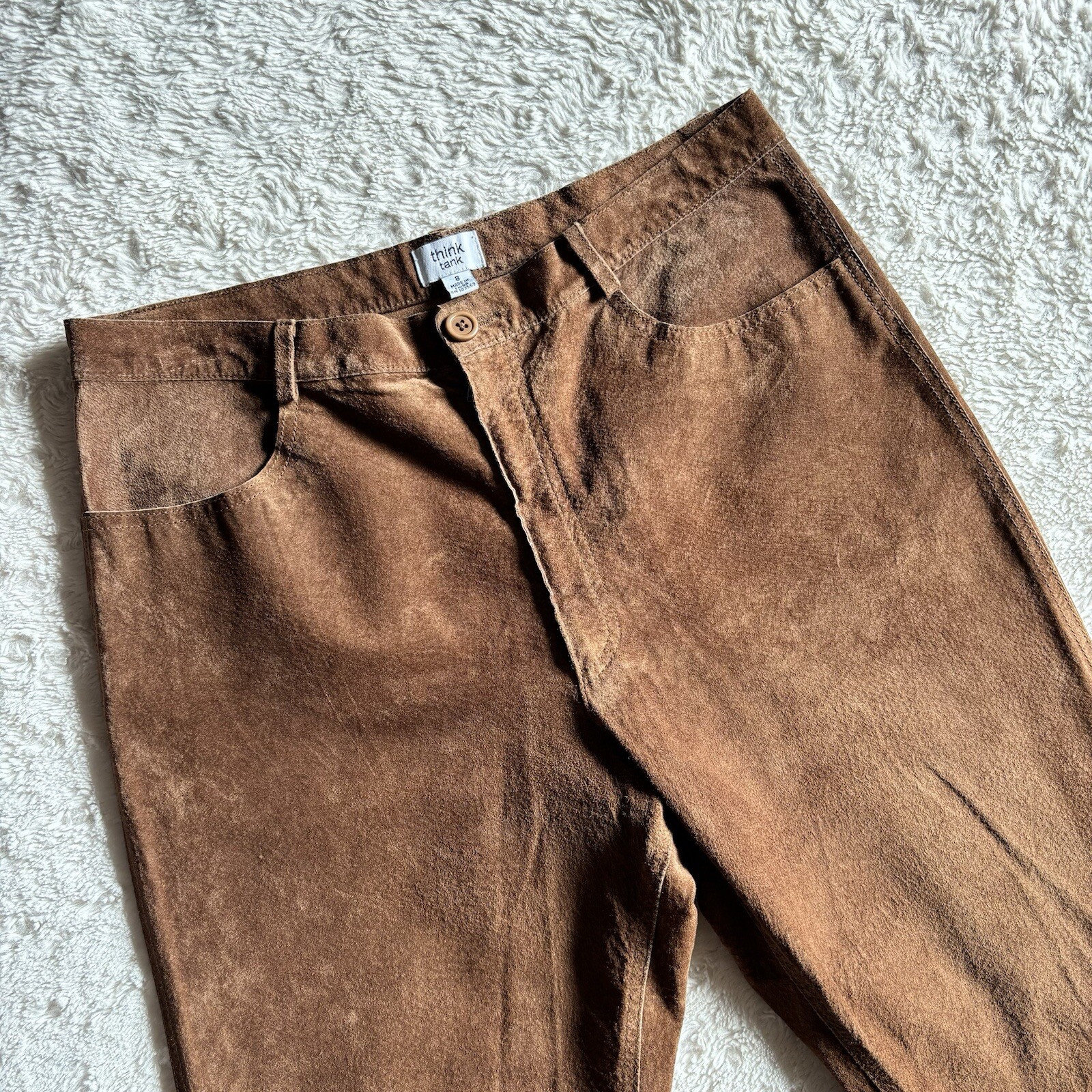 как выглядит Vtg Y2K Suede Pants Flare High Waisted Women s Sz 8 Brown Western Cowgirl Hippie фото