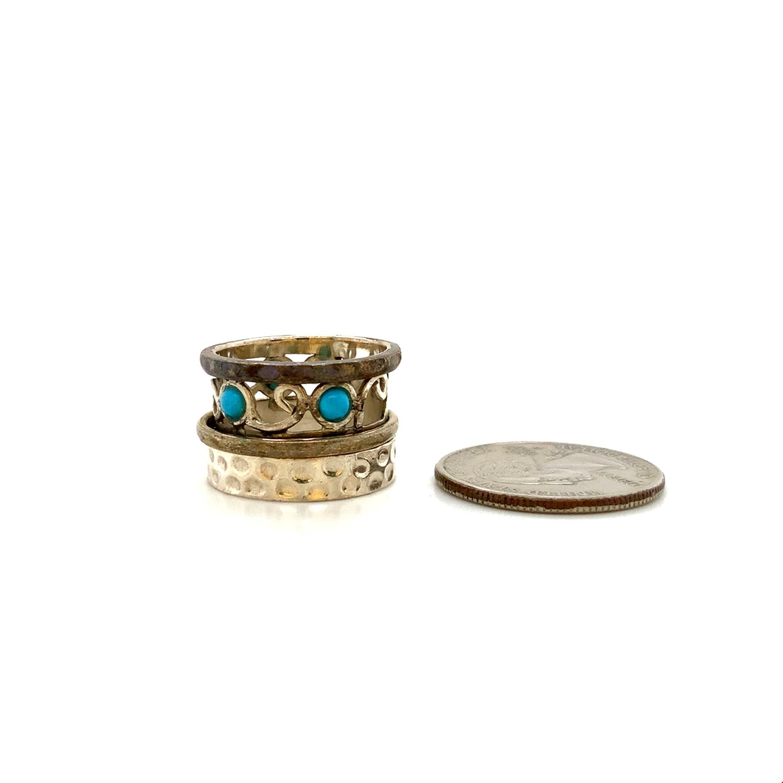 как выглядит Vintage Sterling Signed 925 India Filigree Ornate Turquoise Wide Ring Band sz 7 фото