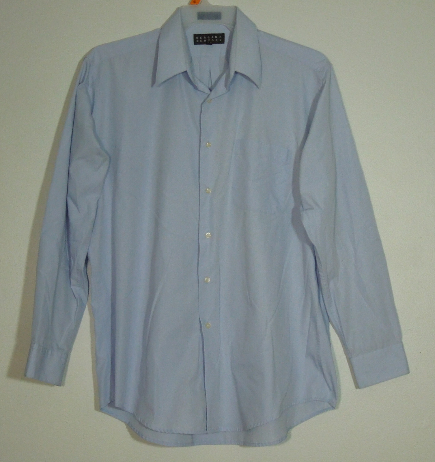 BERGAMO NEW YORK Mens Collared Dress Shirt Blue Long Sleeves L 16-161/2 34/35