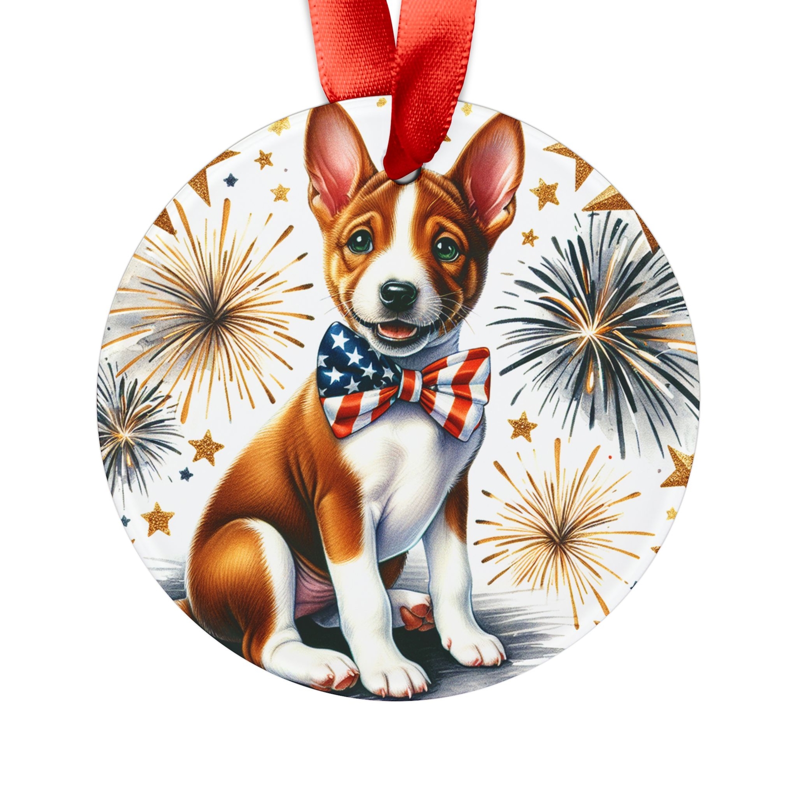 Patriotic Basenji Dog-Themed Acrylic Ornament, Pet Lover's Christmas Gift