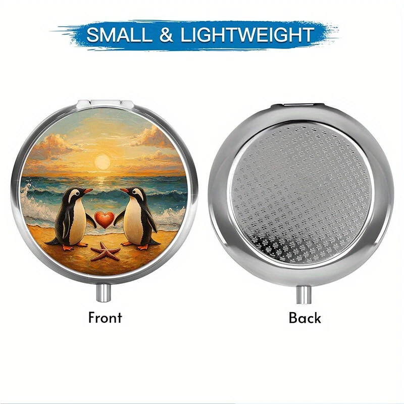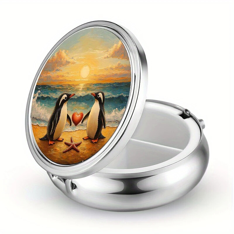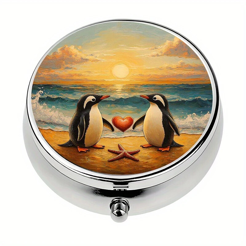 как выглядит Penguin Love Beach Sunset Design 3 Compartment Pill Box Travel Size Portable фото