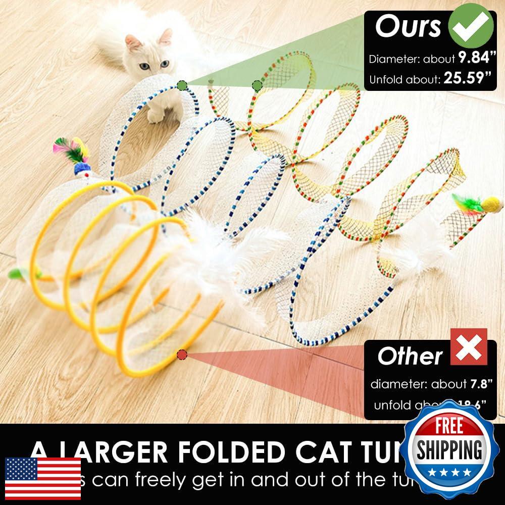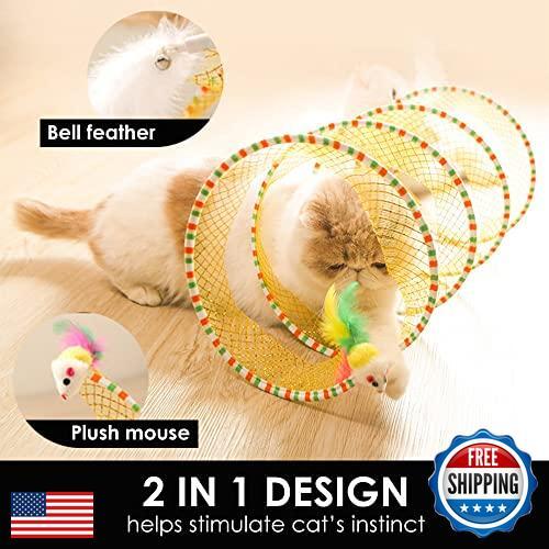 Cat Tunnel Spring Toy, Self Play Cat Toys Collapsible, Hunting Spiral Tunnel