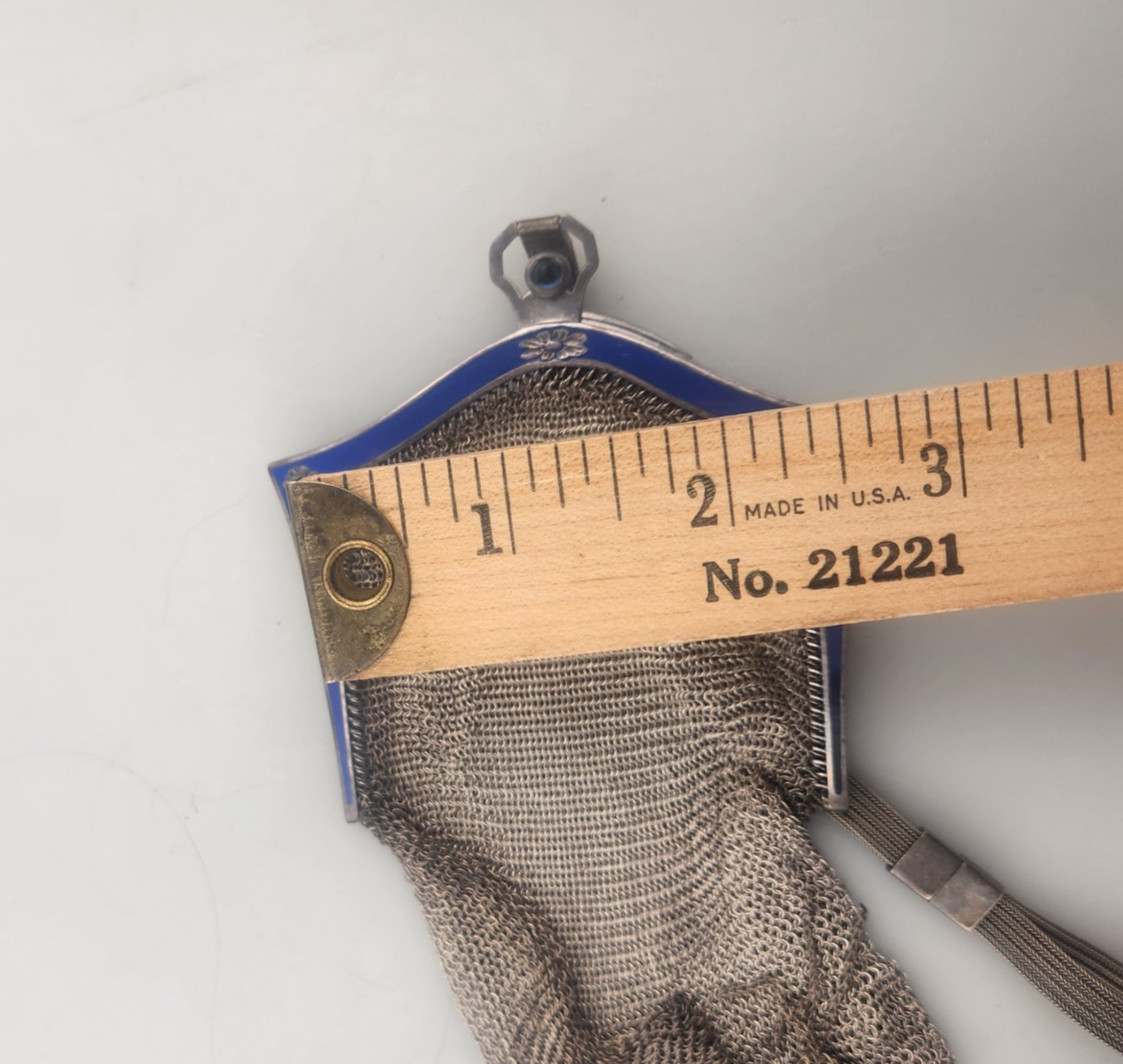 Vtg Art Deco Mesh Purse Sapphire Stone Alpaca Silver Cobalt Blue Enamel Micro