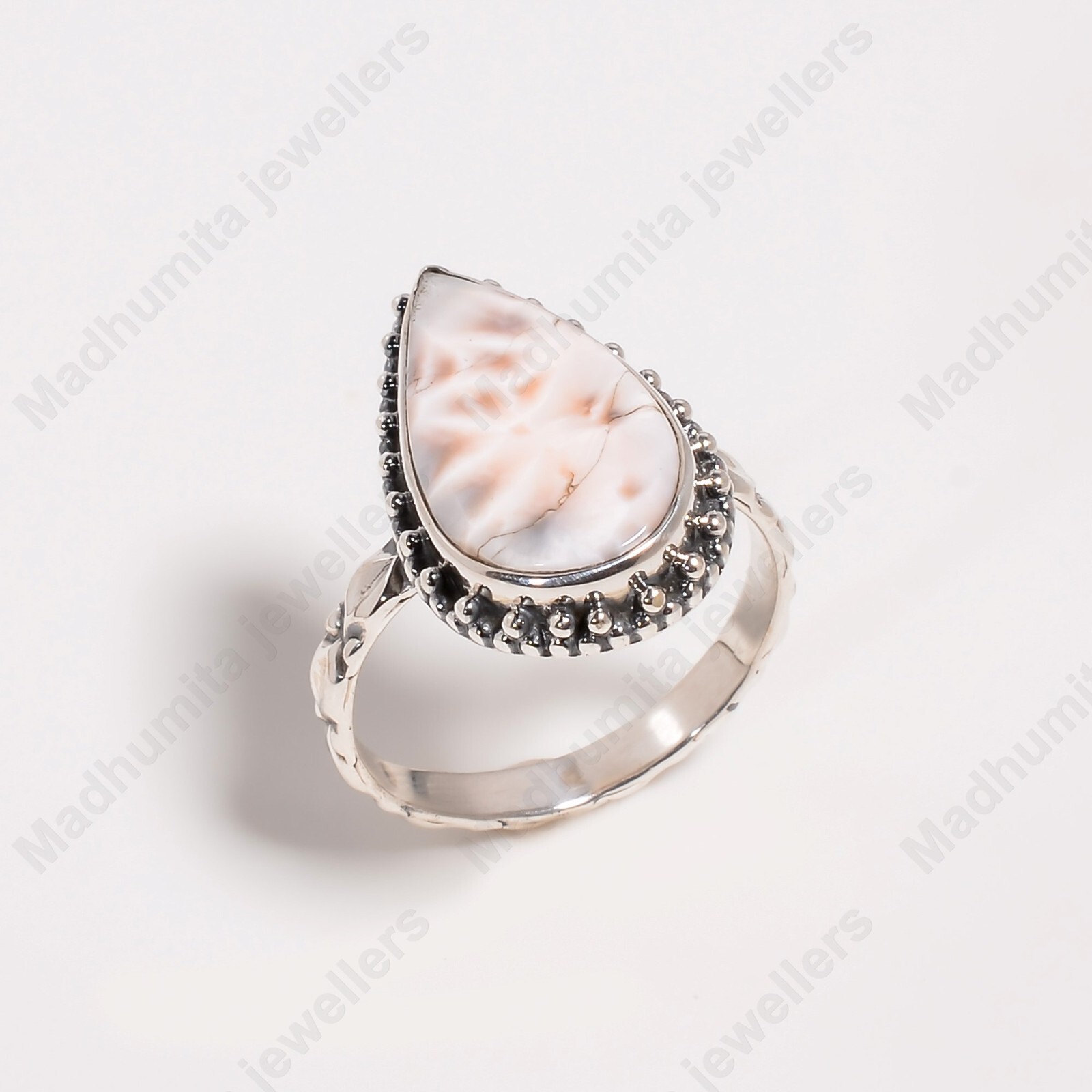 как выглядит Rainbow Pink Larimar Gemstone 925 Sterling Silver Ring Natrolite Handmade Ring фото