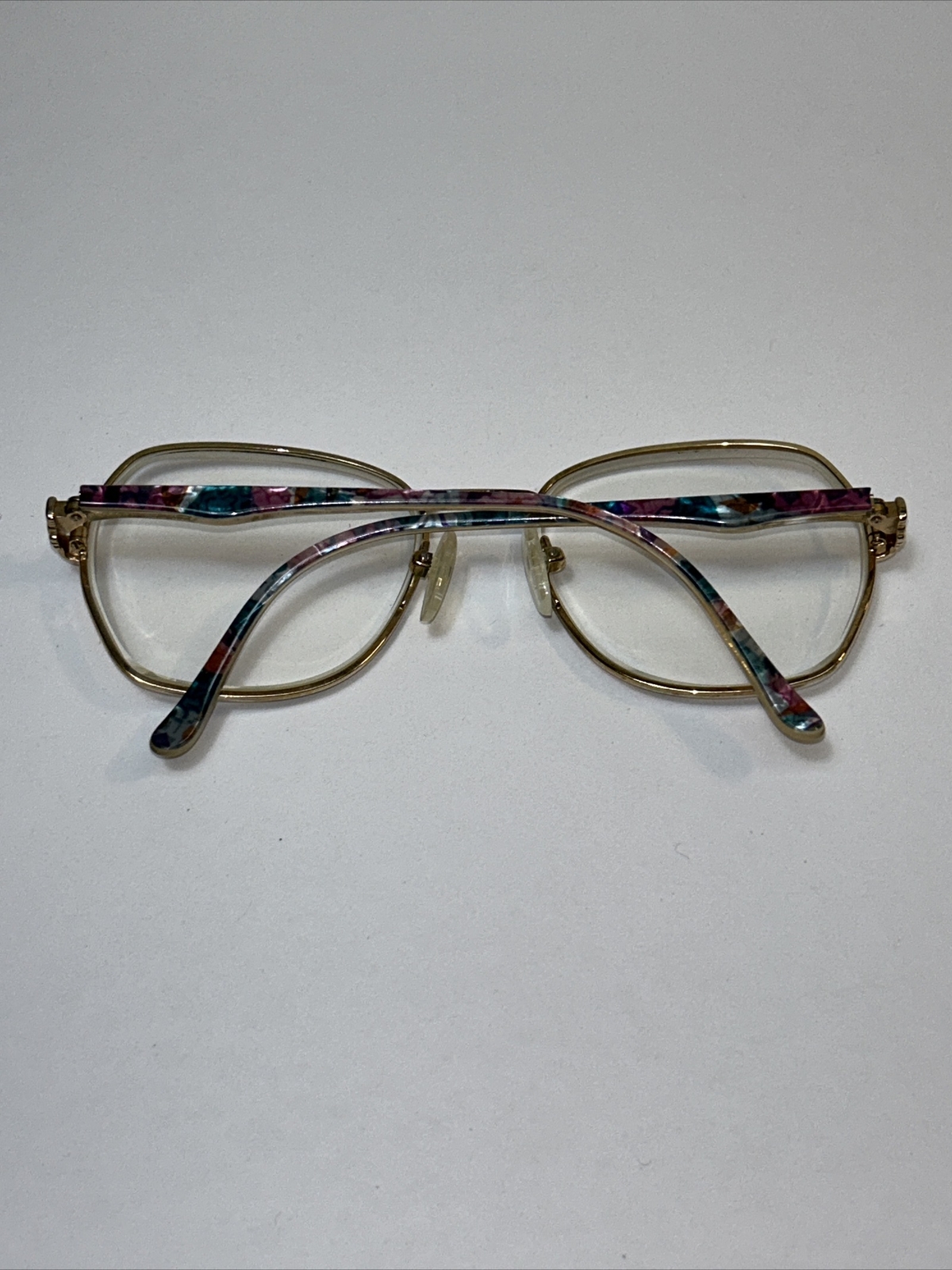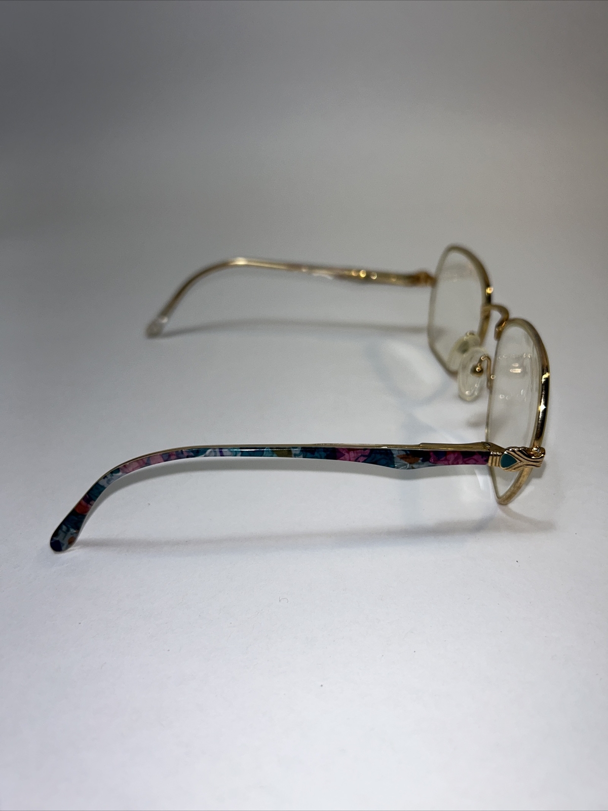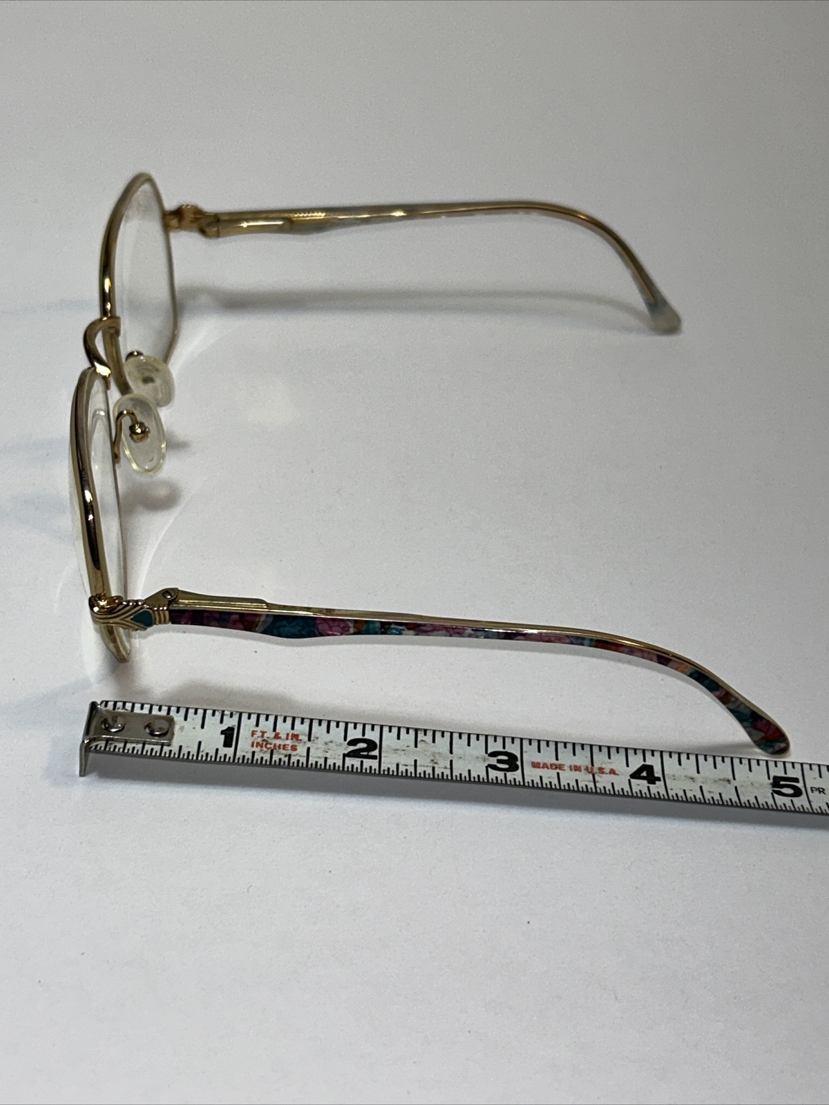 Vintage eyeglasses, Joan Collins, Sequel,J-264,TEL,Marine, 53-17, Floral Design
