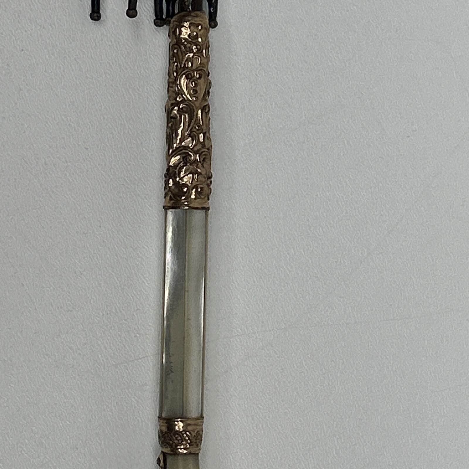 Antique Victorian Mother Of Pearl And Gold Tone Handle With Umbrella Skeleton