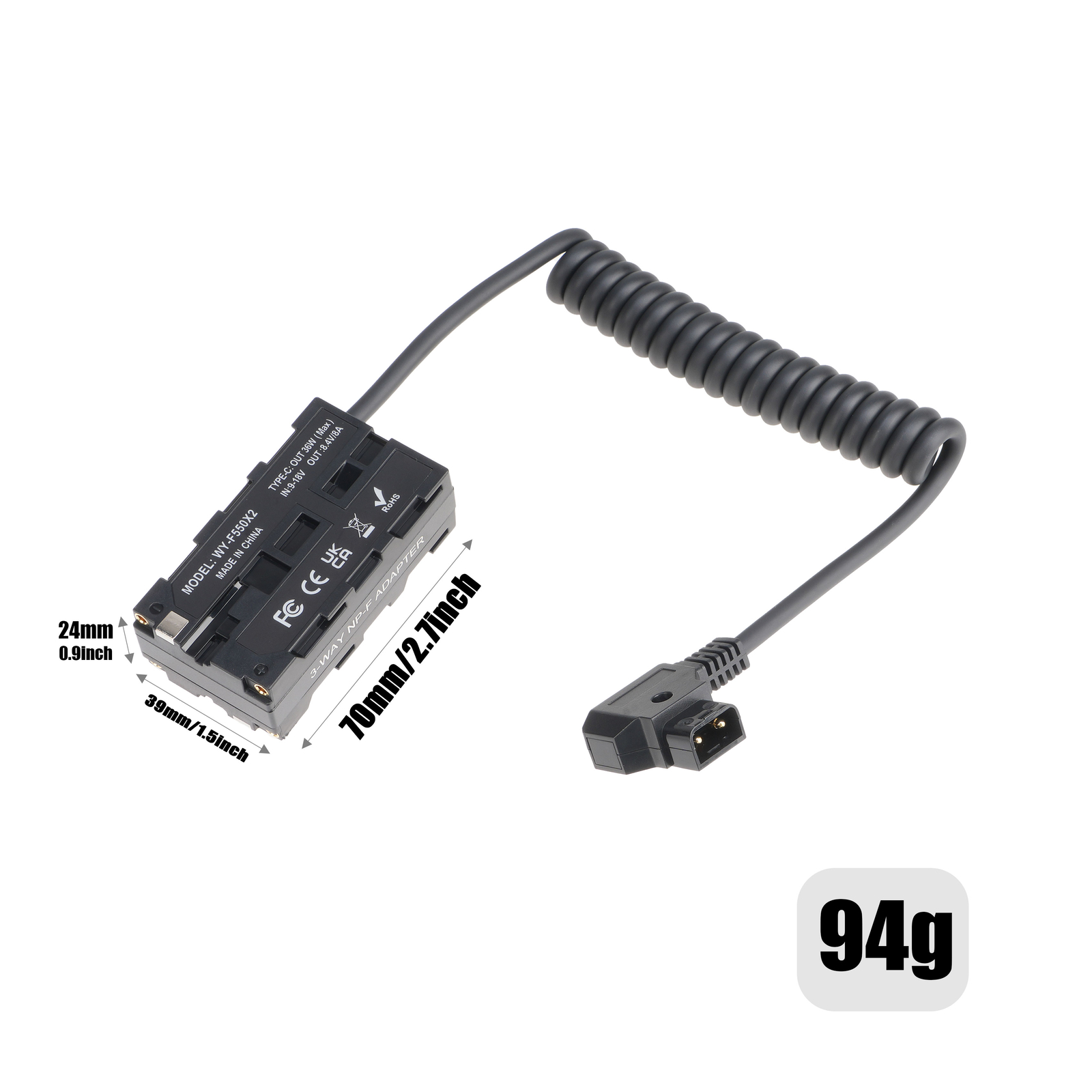 как выглядит 9V-20V D-Tap to NP-F550 Dummy Battery Power Adapter Cable for Camera Monitor фото
